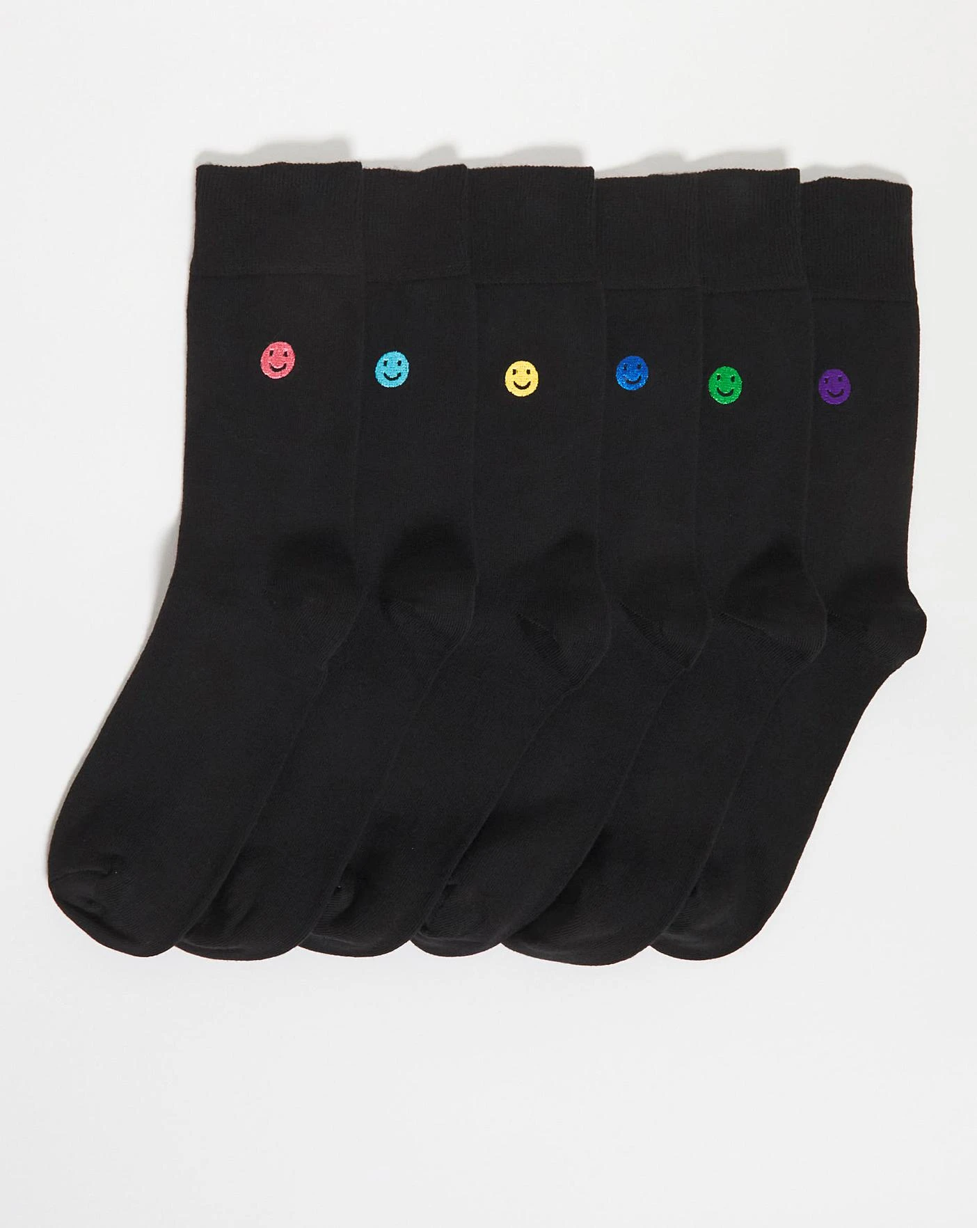 6 Pack Smiley Embroidery Socks