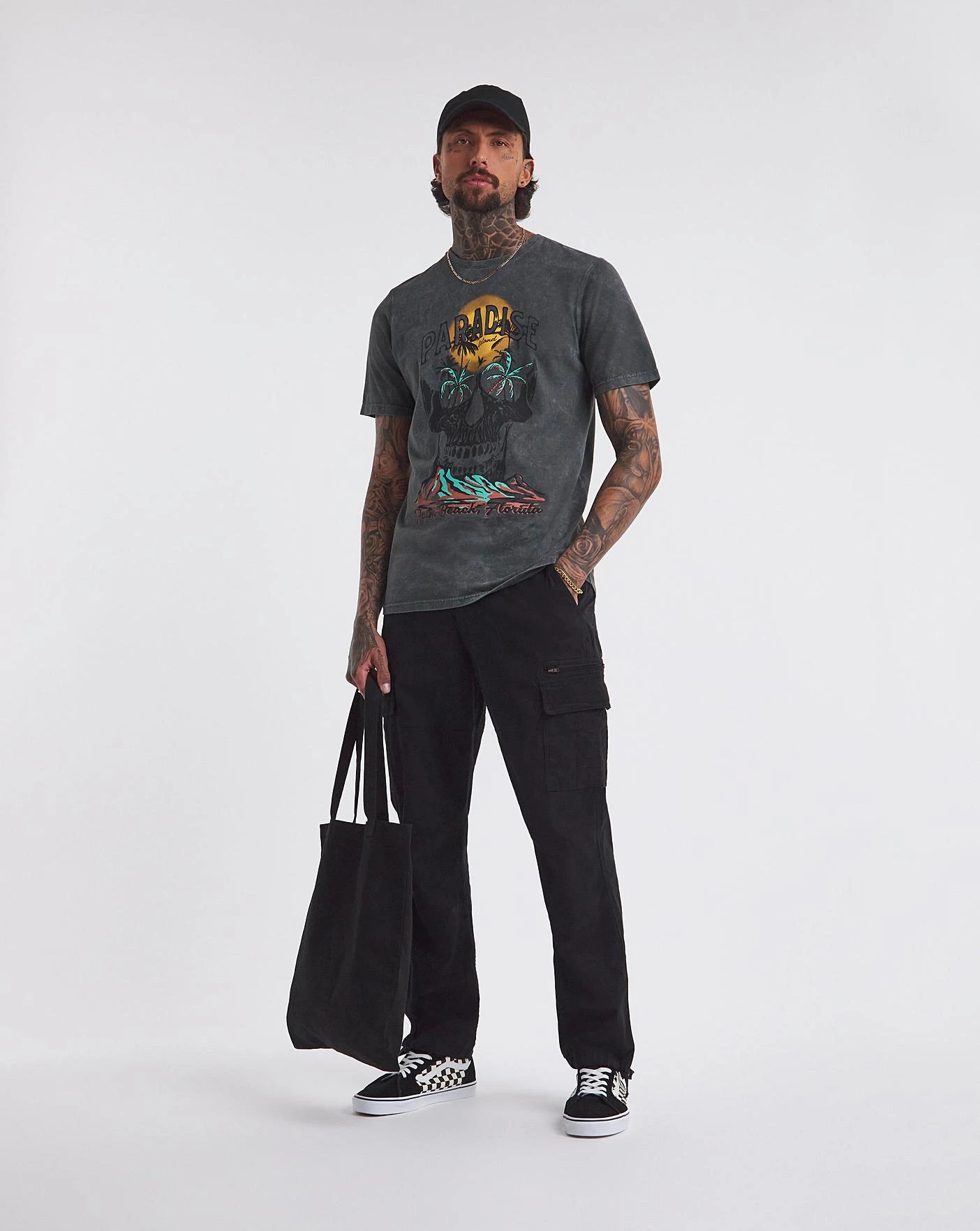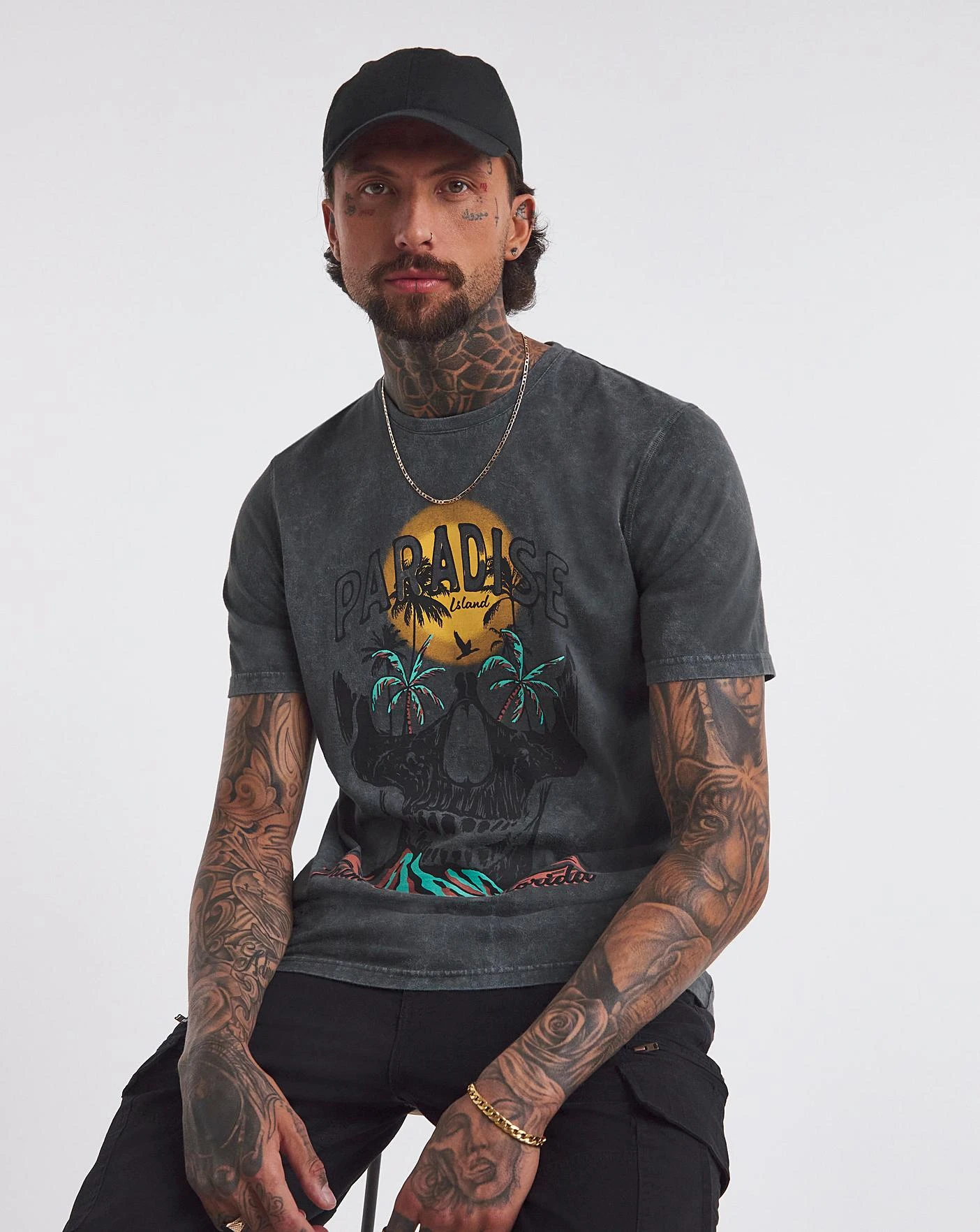 This Acid Wash Skull Graphic T-shirt in charcoal is fresh and new for the season. The acid wash graphic creates a stylish element to any outfit. Made up of cotton, this t-shirt is comfortable and an easy wear for any smart casual occasion.