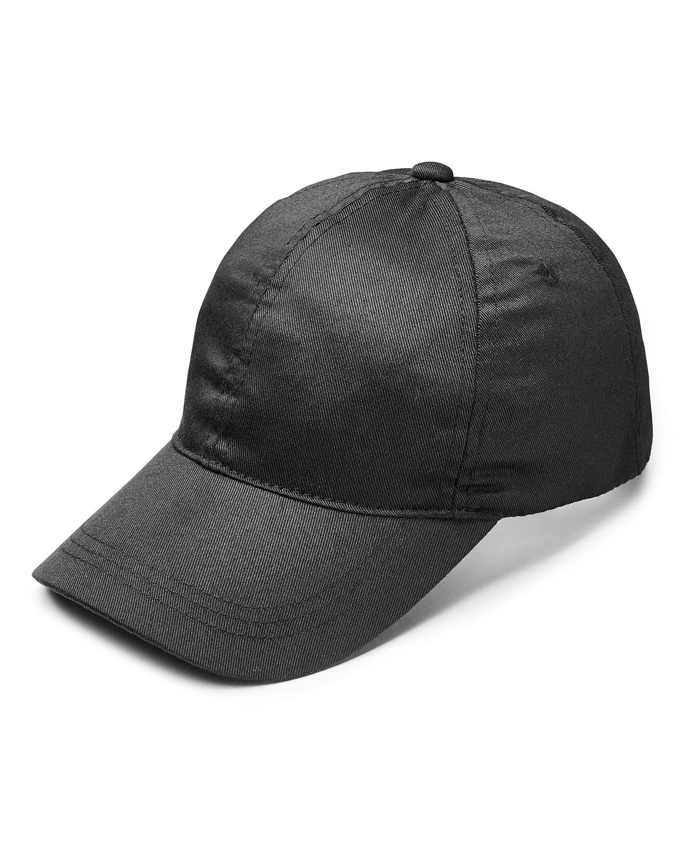 Black plain baseball cap with touch-and-close back adjuster.