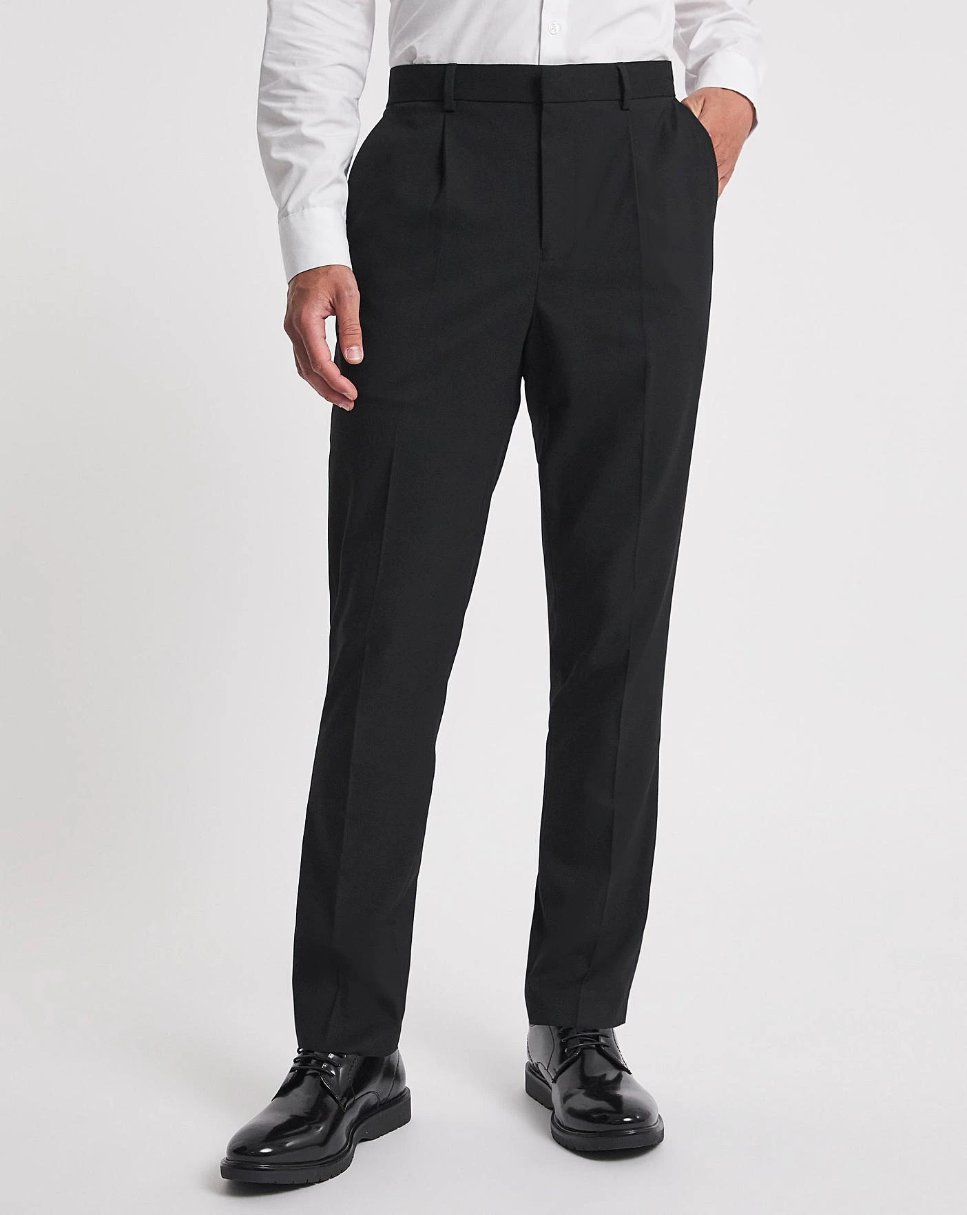 Smarten up in these black tapered pleat front trouser from Jacamo. These have added stretch built into their composition to ensure they are fully flexible and add comfort to the wearer.