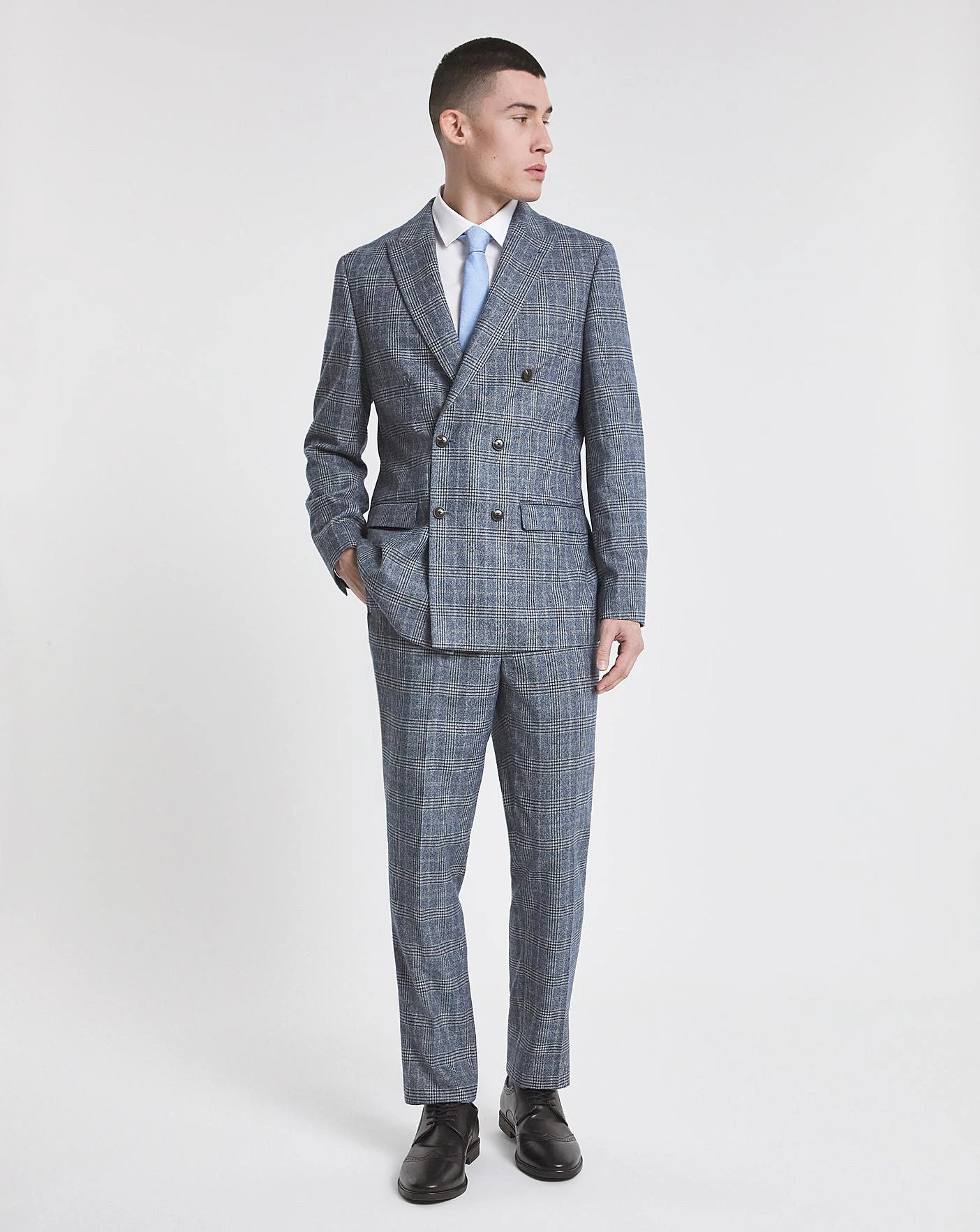 This Check Regular Fit Double Breasted Suit Jacket in blue is great for any occasion this season, whether you are going to a wedding, christening, or just looking for a new suit for the office. Team with matching Trouser to complete the look