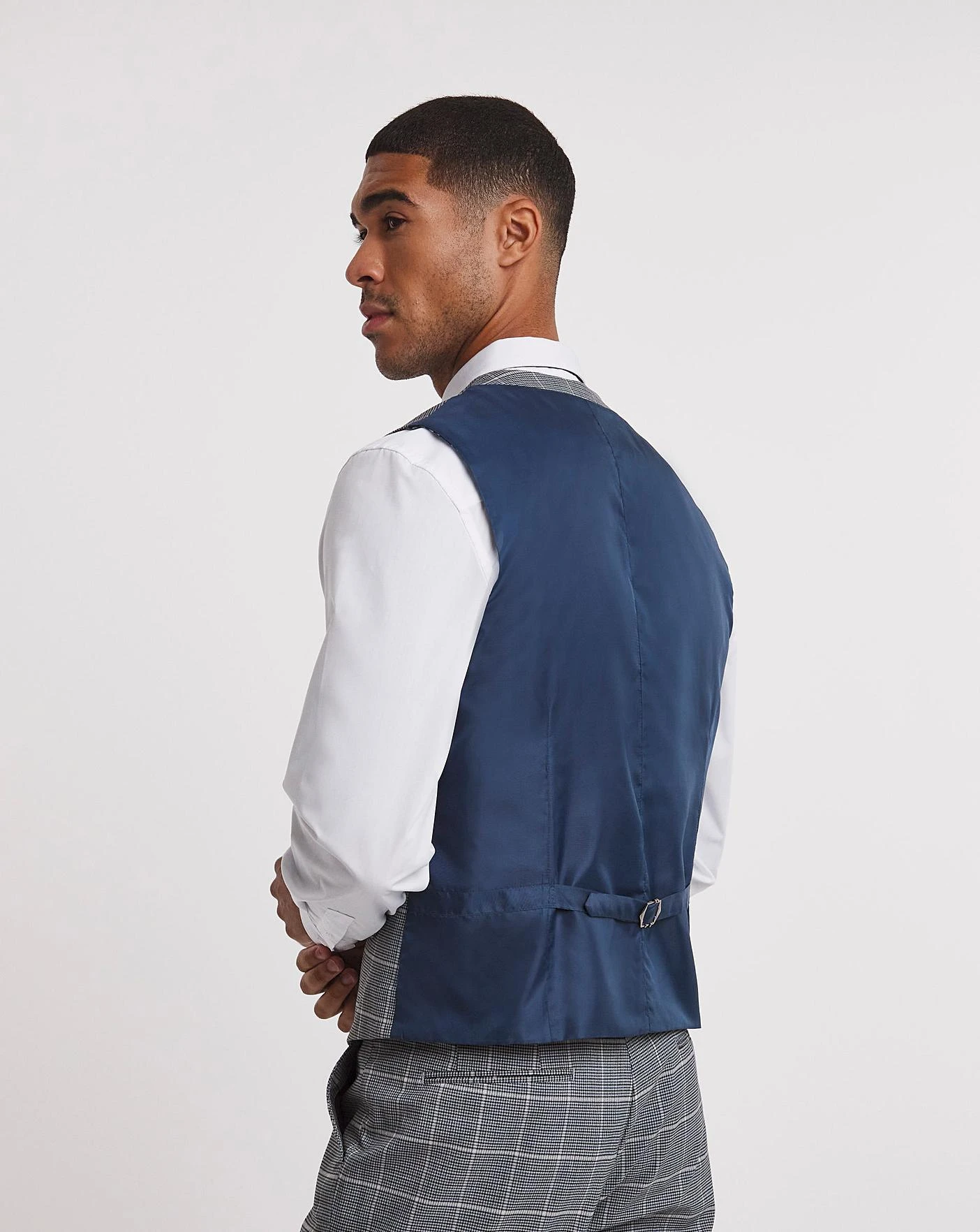 This blue check regular fit suit waistcoat is smart and fresh for the season. Pair with the matching trousers and jacket for a smart, trendy look for any occasion this season.