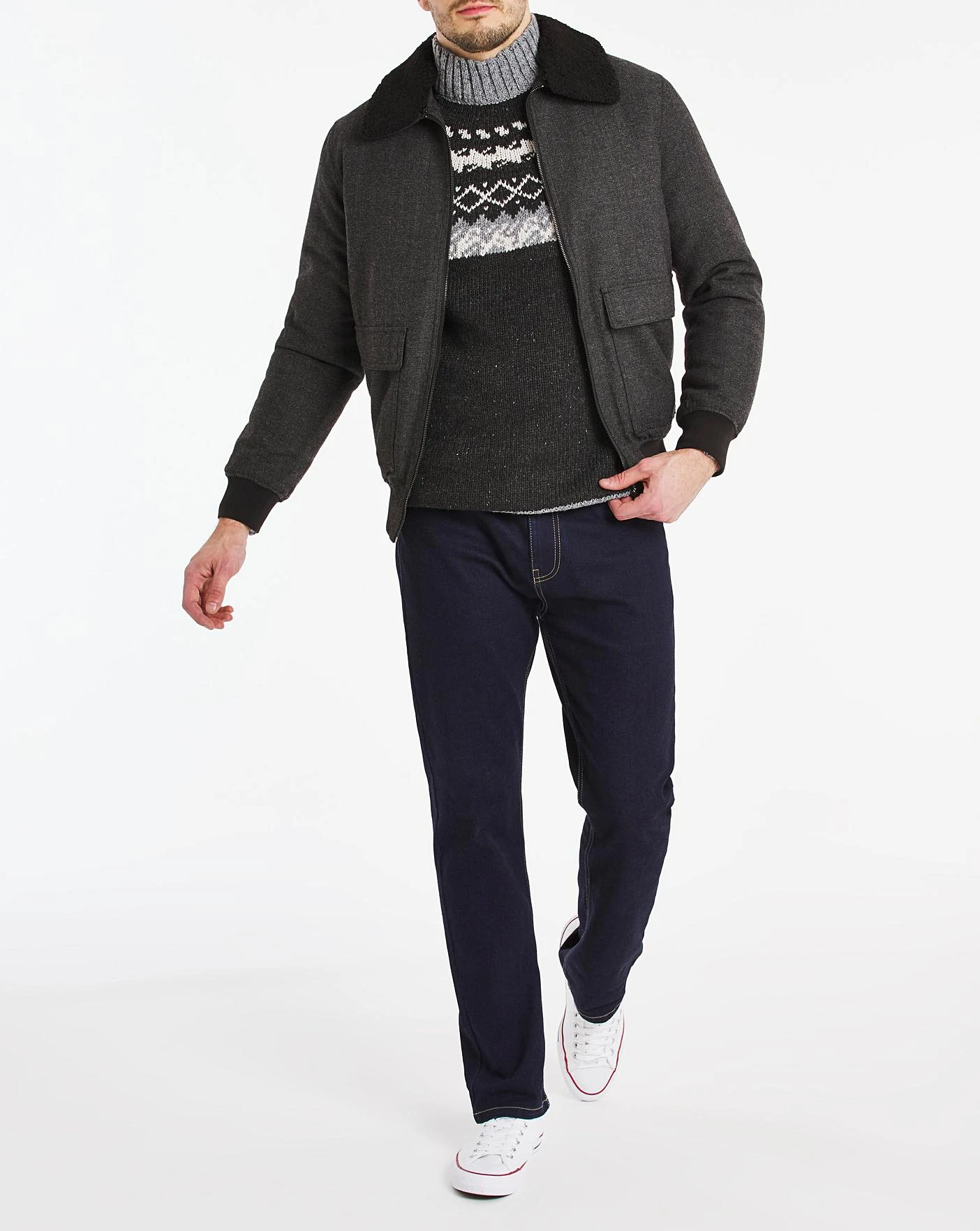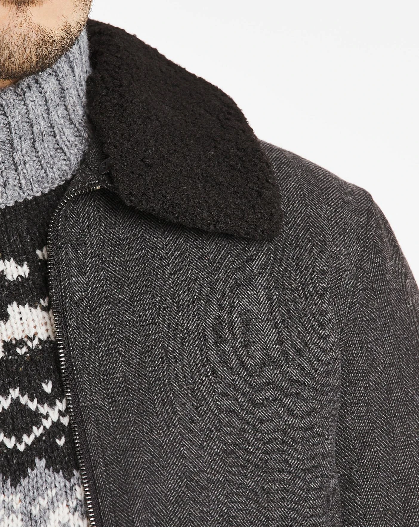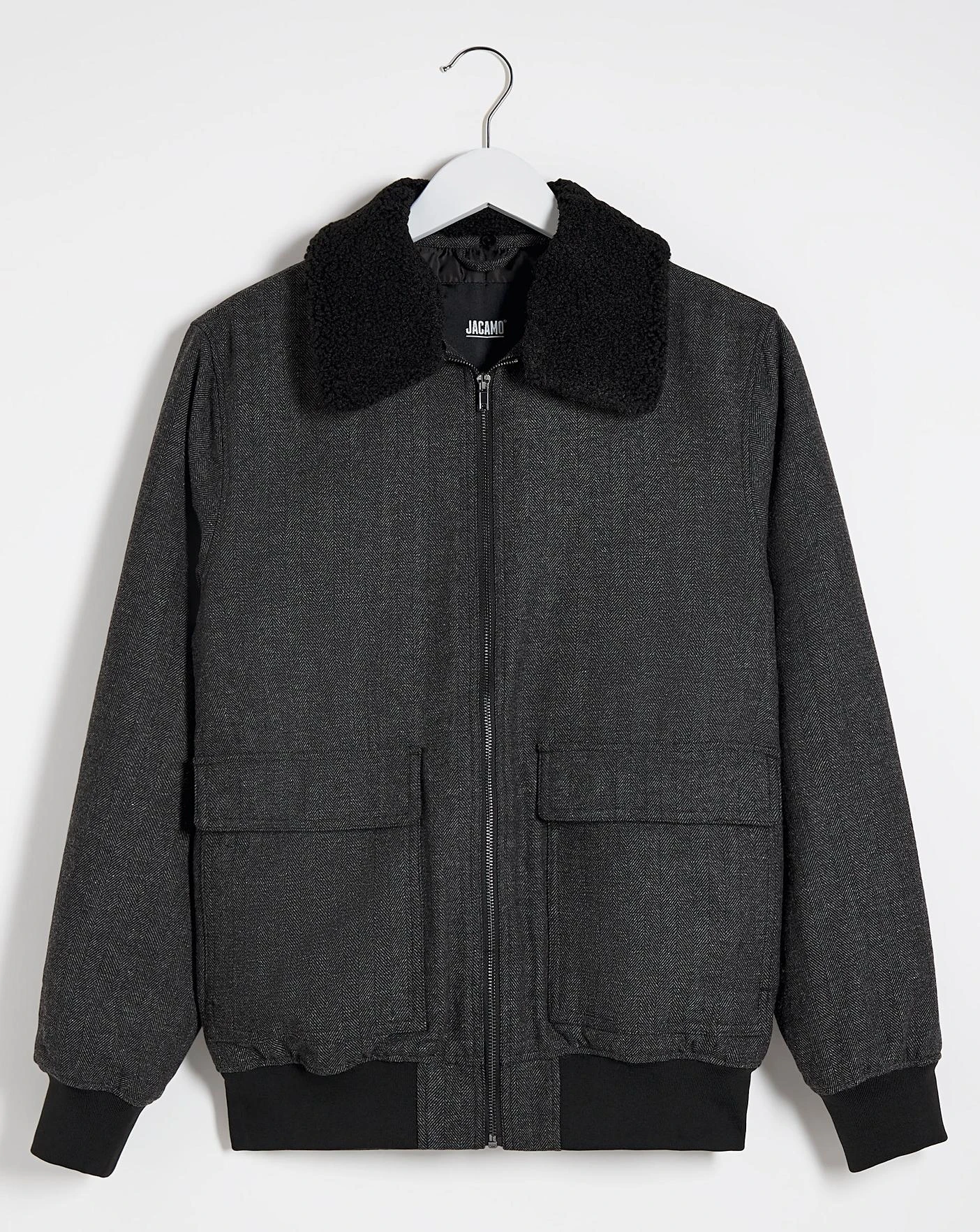Zip front wool mix coat with ribbed cuffs and hem and finished with a borg fleece collar for added warmth.