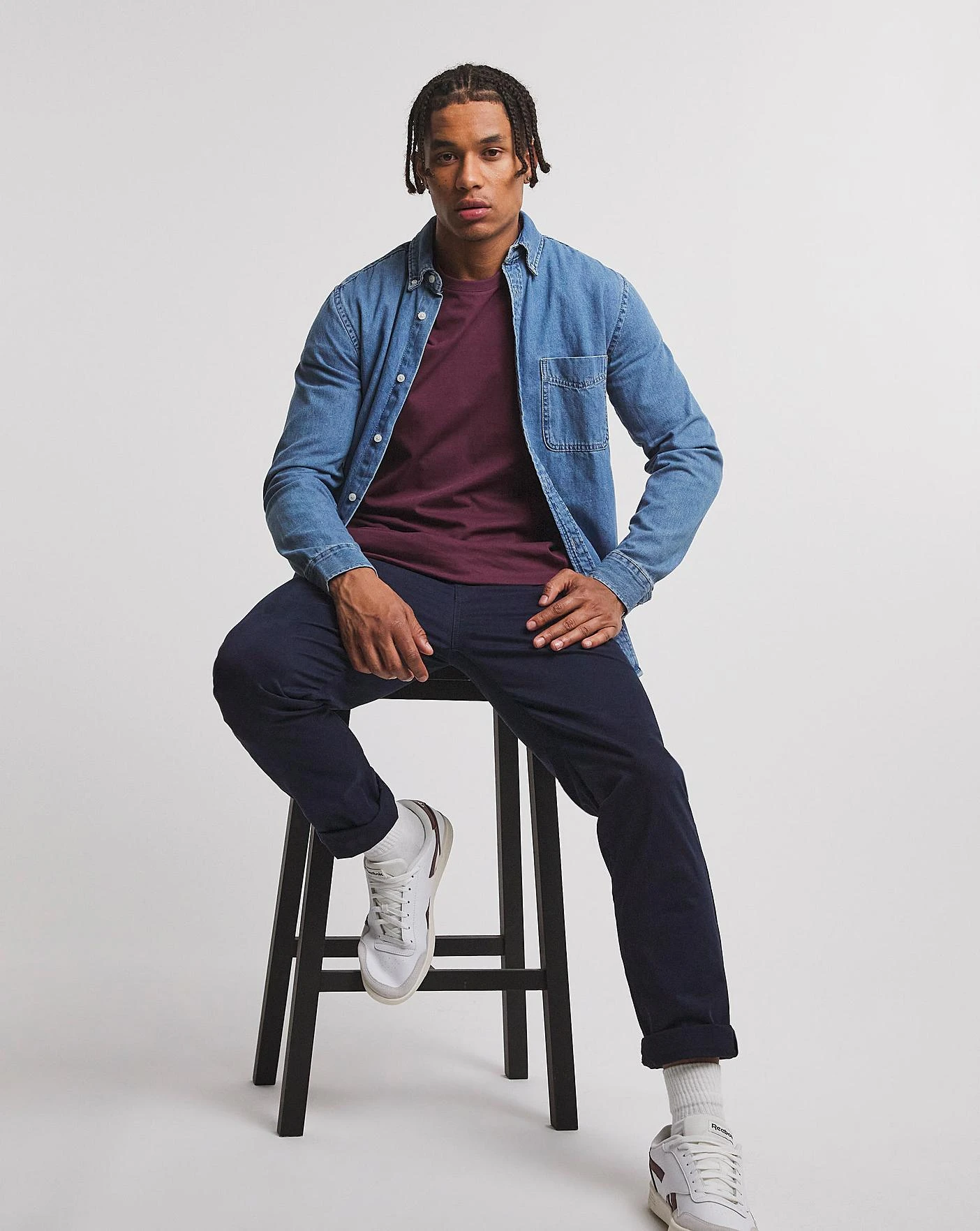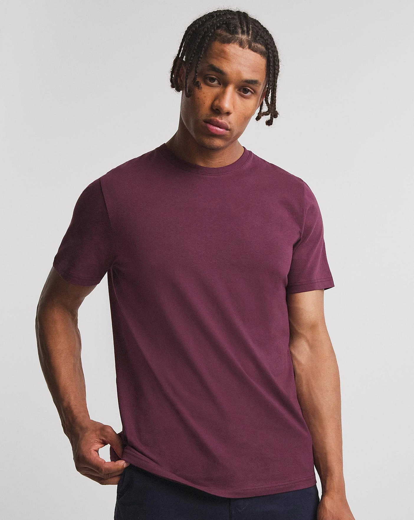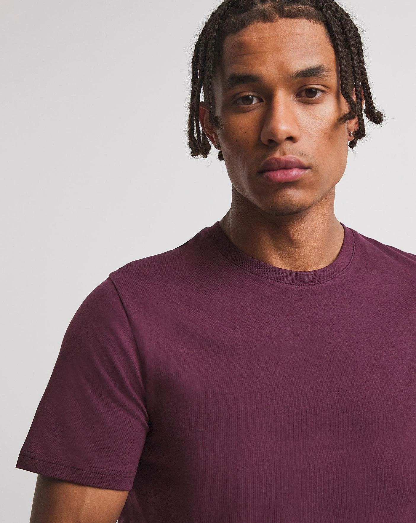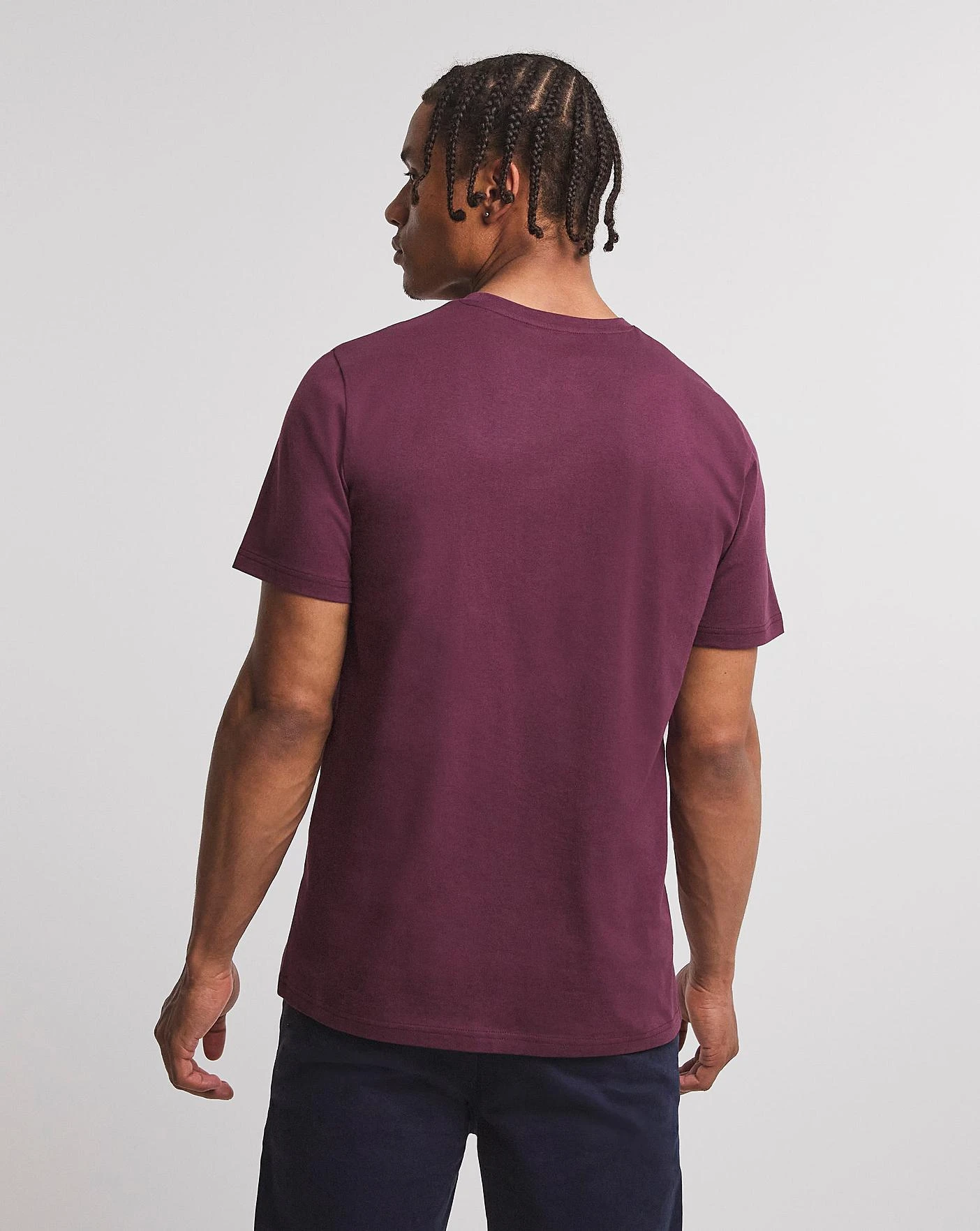 This crew neck t-shirt in a long length and in burgundy is made up of cotton, making this breathable and with added comfort.