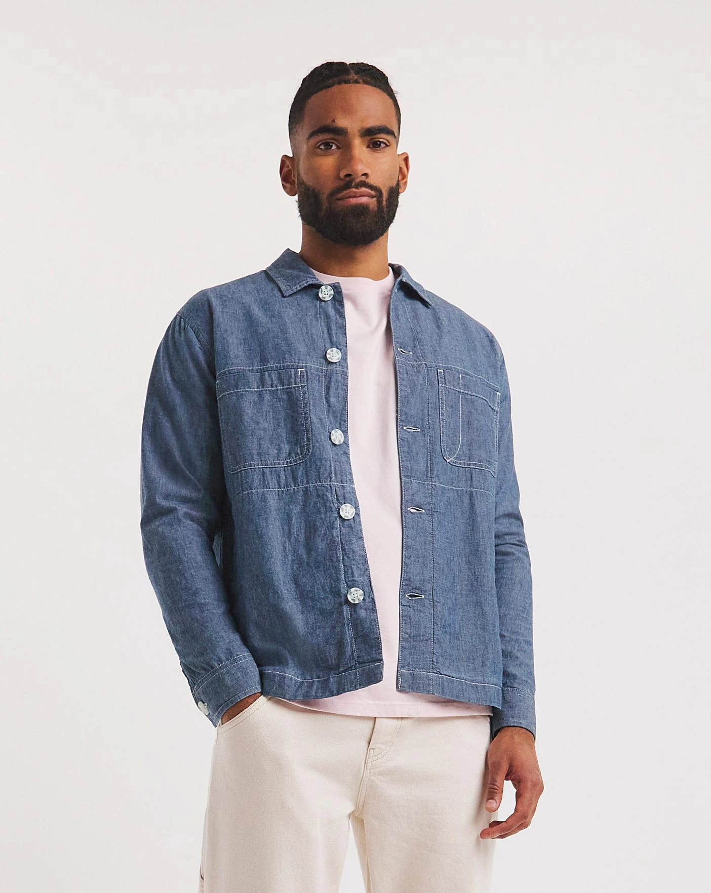 This Jacamo denim chambray shacket in blue is a great layering piece to add to your wardrobe. Pair it with some chinos and trainers for a cool look.