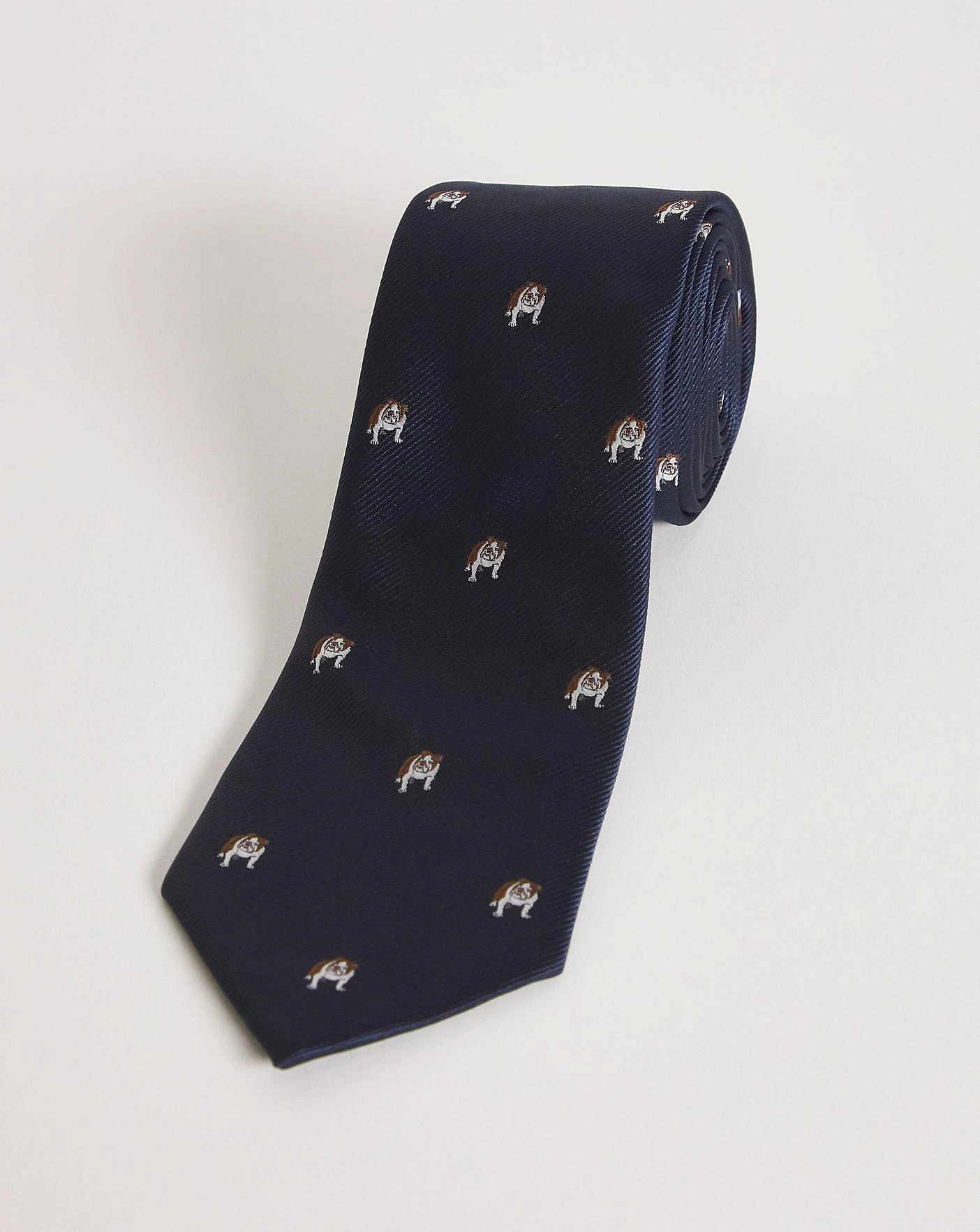 This Dog Novelty Tie in navy is fresh, fun and stylish for the season. Pair with one of our classic suits for a smart/casual look this season.