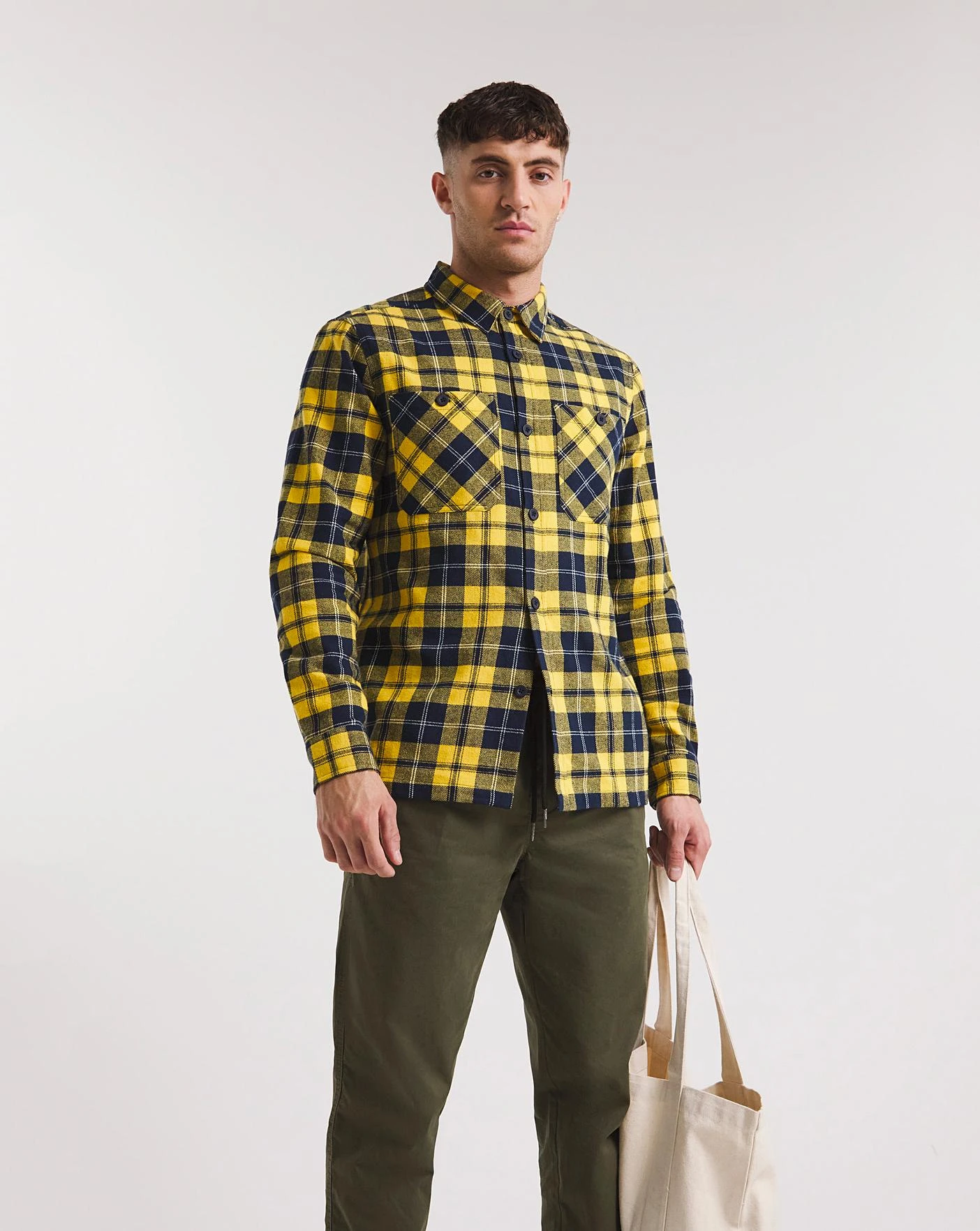This Jacamo long sleeve double pocket check overshirt in yellow is perfect for this season. Pair it woth some chinos and a tshirt for a relaxed look.