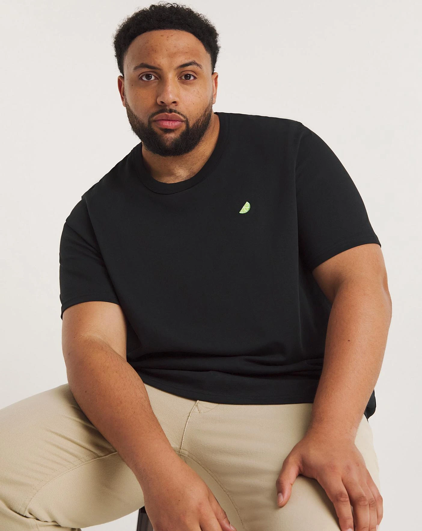 This Embroidered T-shirt in black is fresh and stylish for the season. This is comfortable and breathable, great for any casual look.