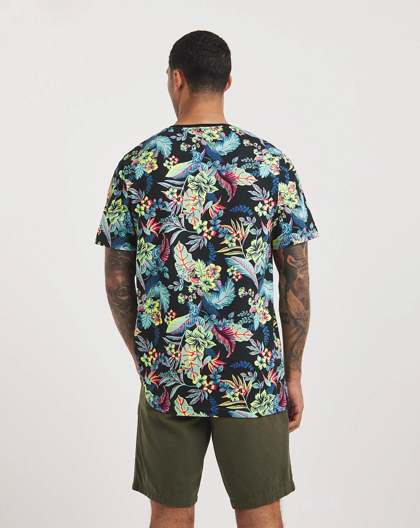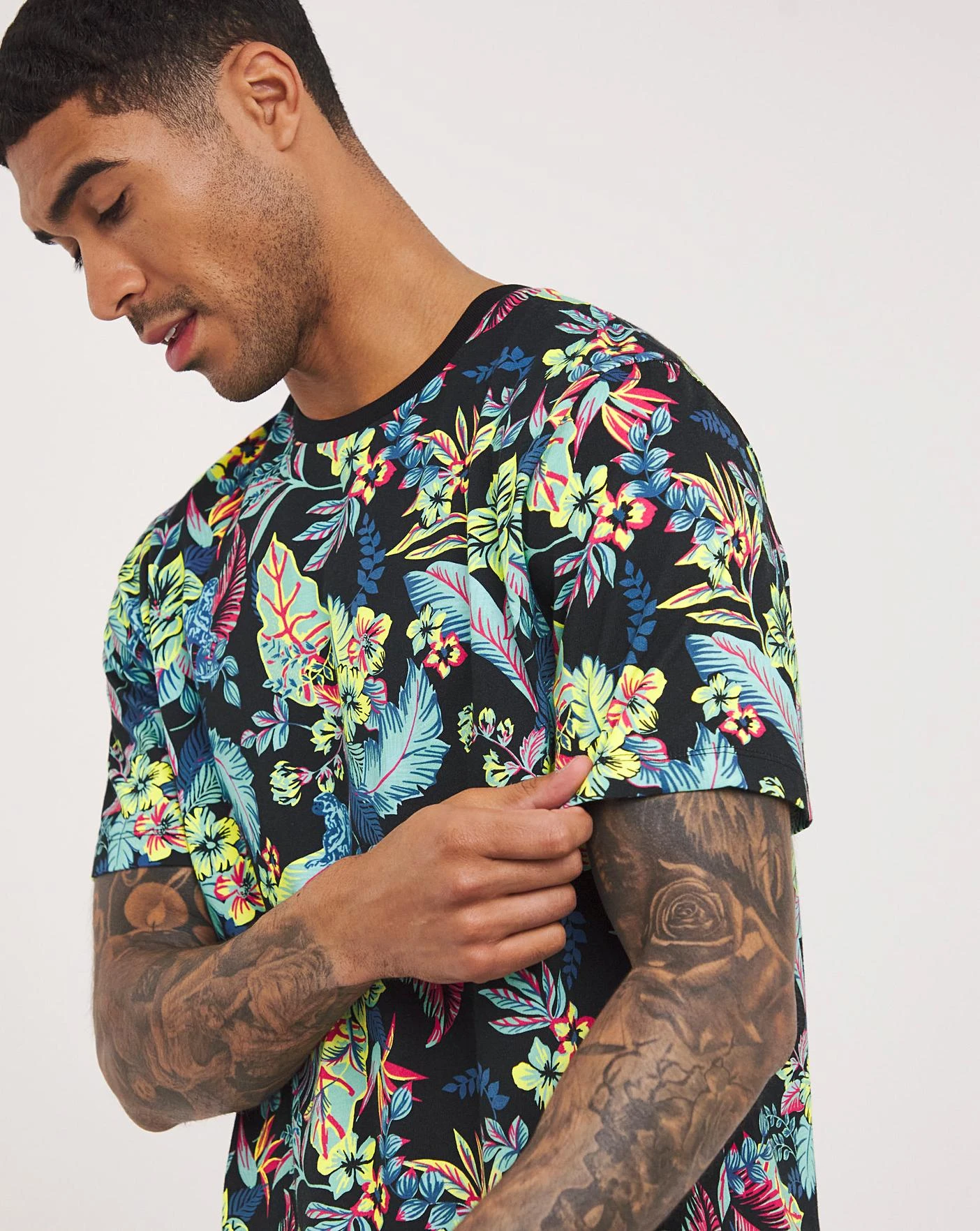 This Floral All Over Print T-shirt in a long length in multi is fresh and comfortable for the season. Pair with some chinos or jeans from our collection for a smart casual look.