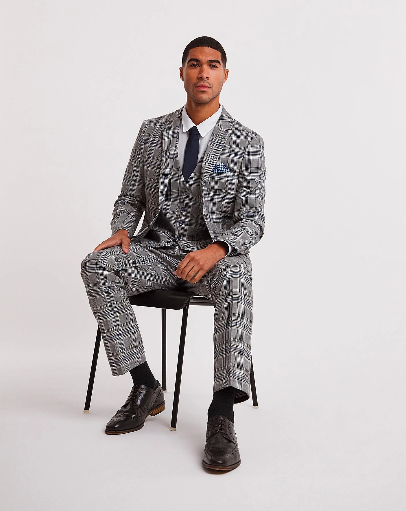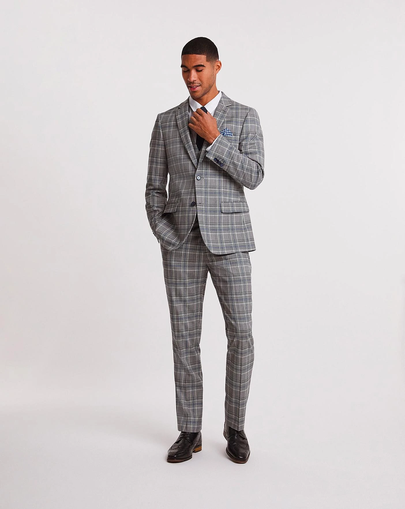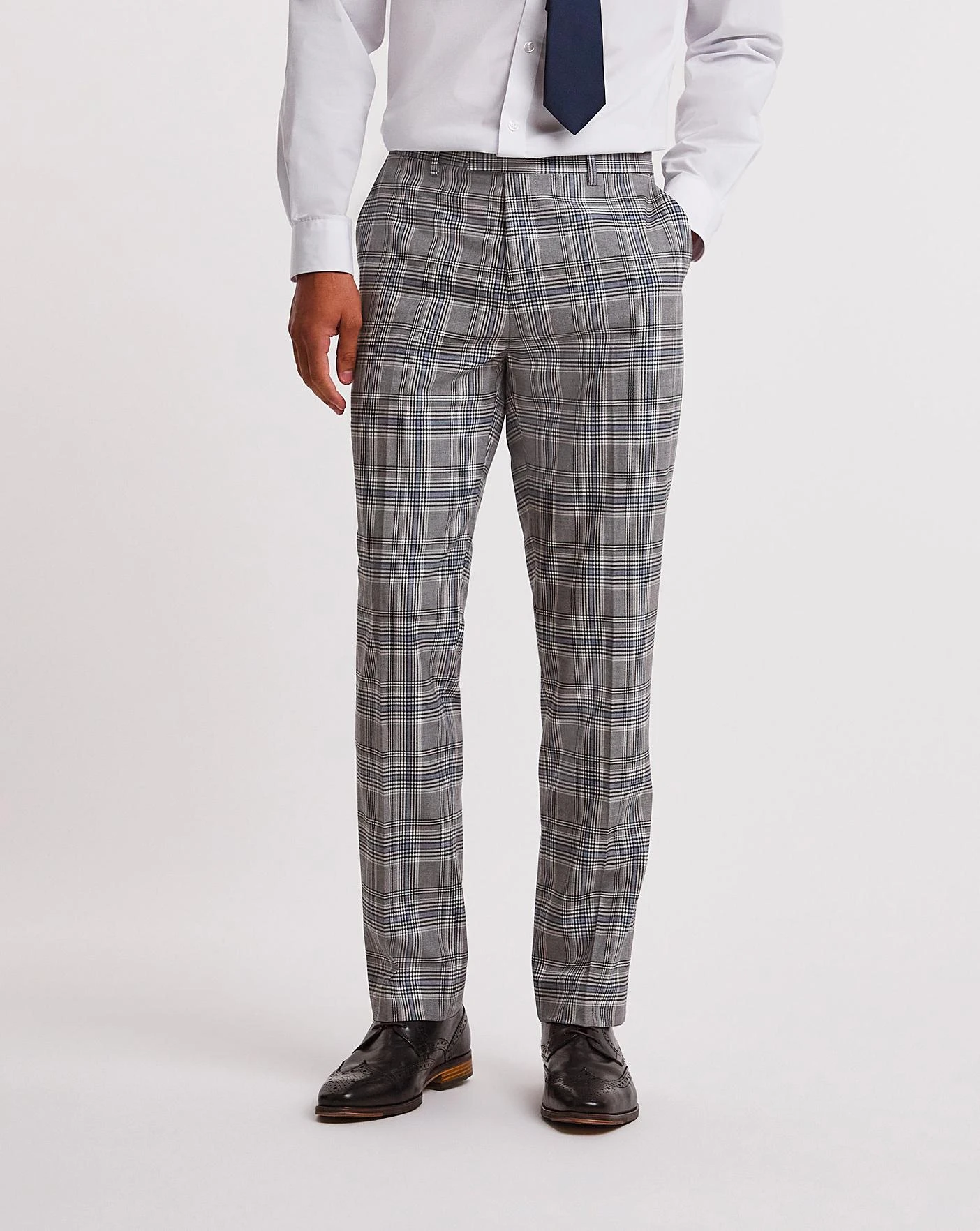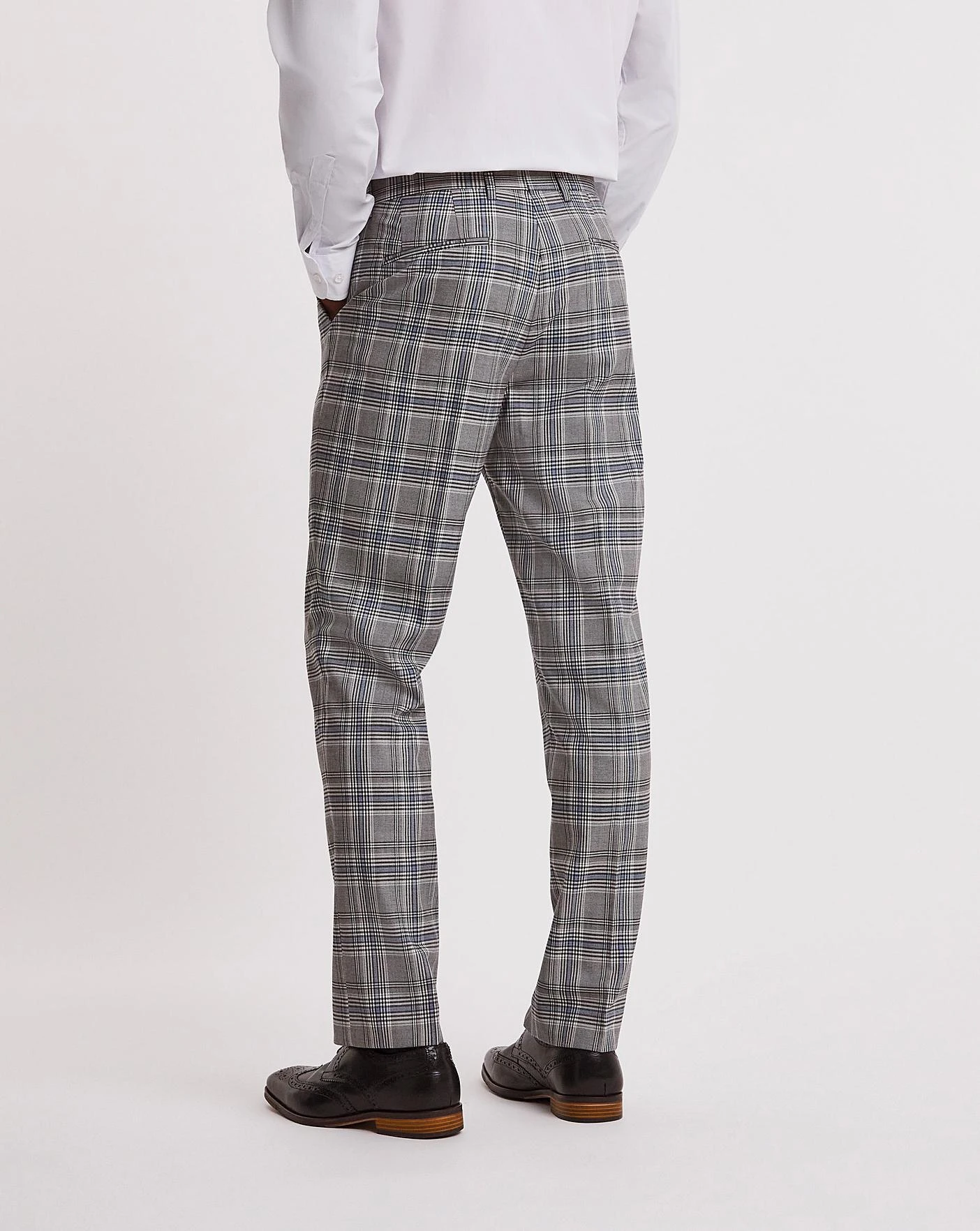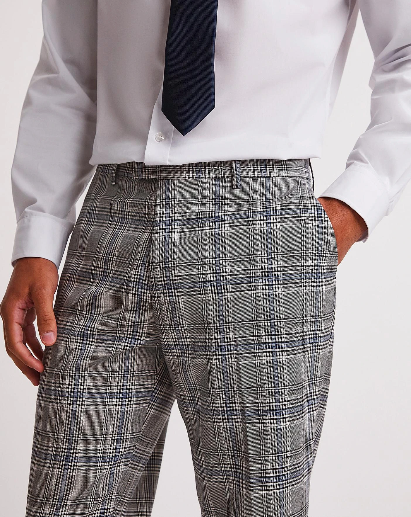This grey check regular fit suit trouser is smart and fresh for the season. Pair with the matching jacket for a smart, trendy look for any occasion this season.