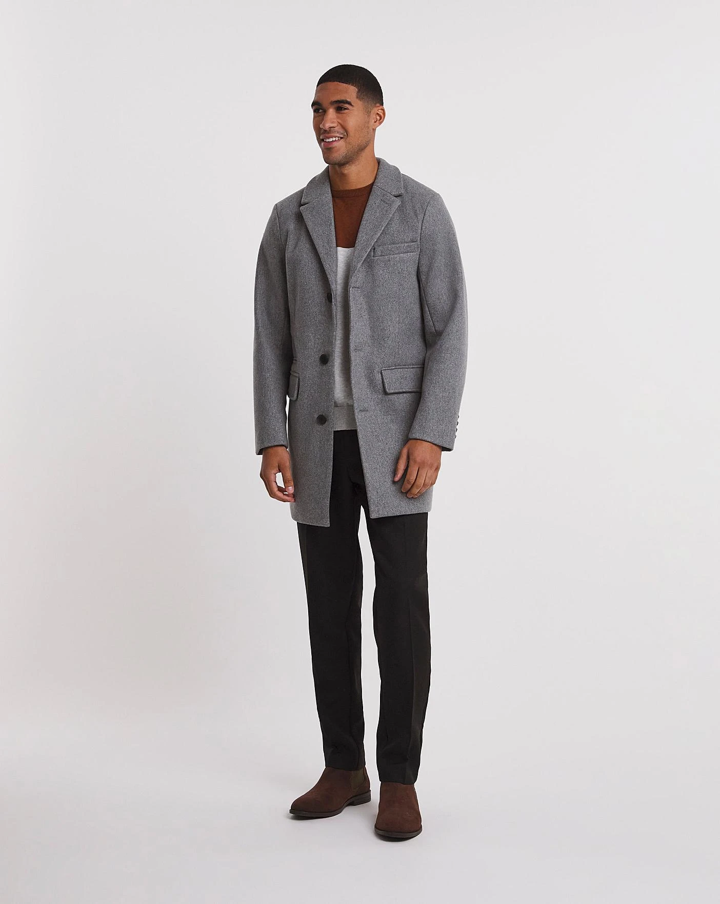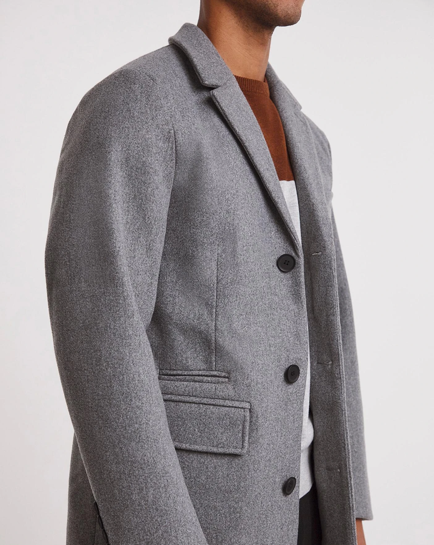 Sharpen up in this grey wool overcoat. This coat is very versitile in that it can be dressed up or worn more casually depending on the occasion.