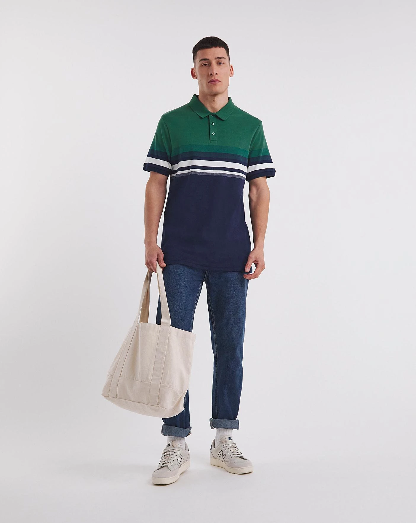 This Jacquard Polo in a long length in green is fresh and stylish for the season. The long length creates added fit and comfort.