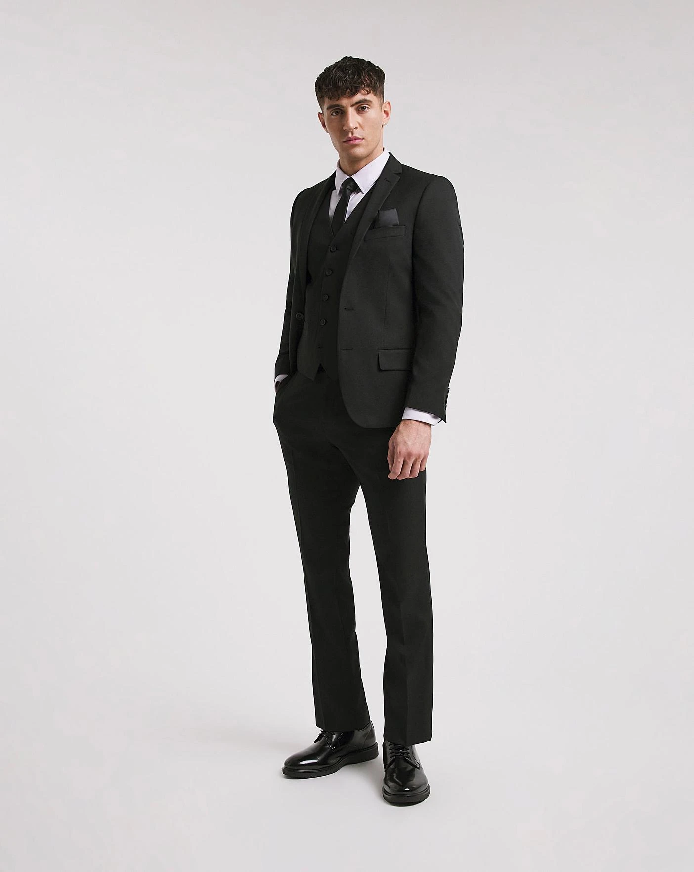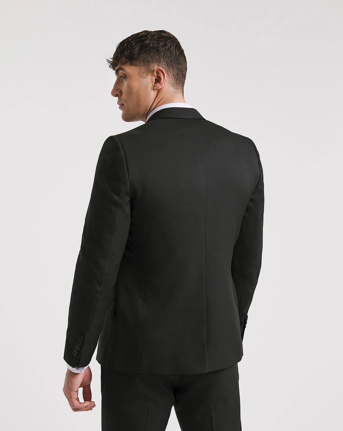 Suit jacket featuring two button front-fastening, centre back vent, two flap hip pockets, one chest pocket and two inside pockets, one of which has a button fastening.