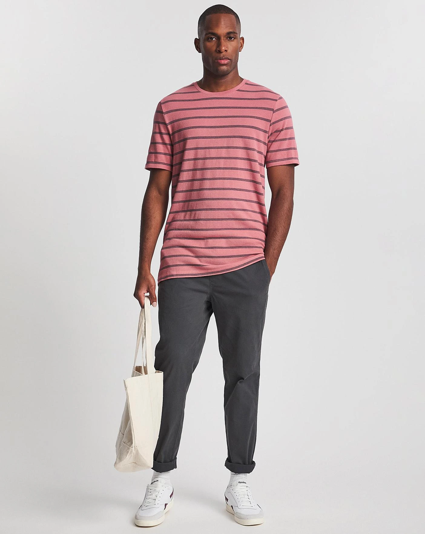 Our new jaquard stripe t-shirt is great for that smart casual look. Pair with jeans or chinos to make this t-shirt trendy, casual and comfortable.