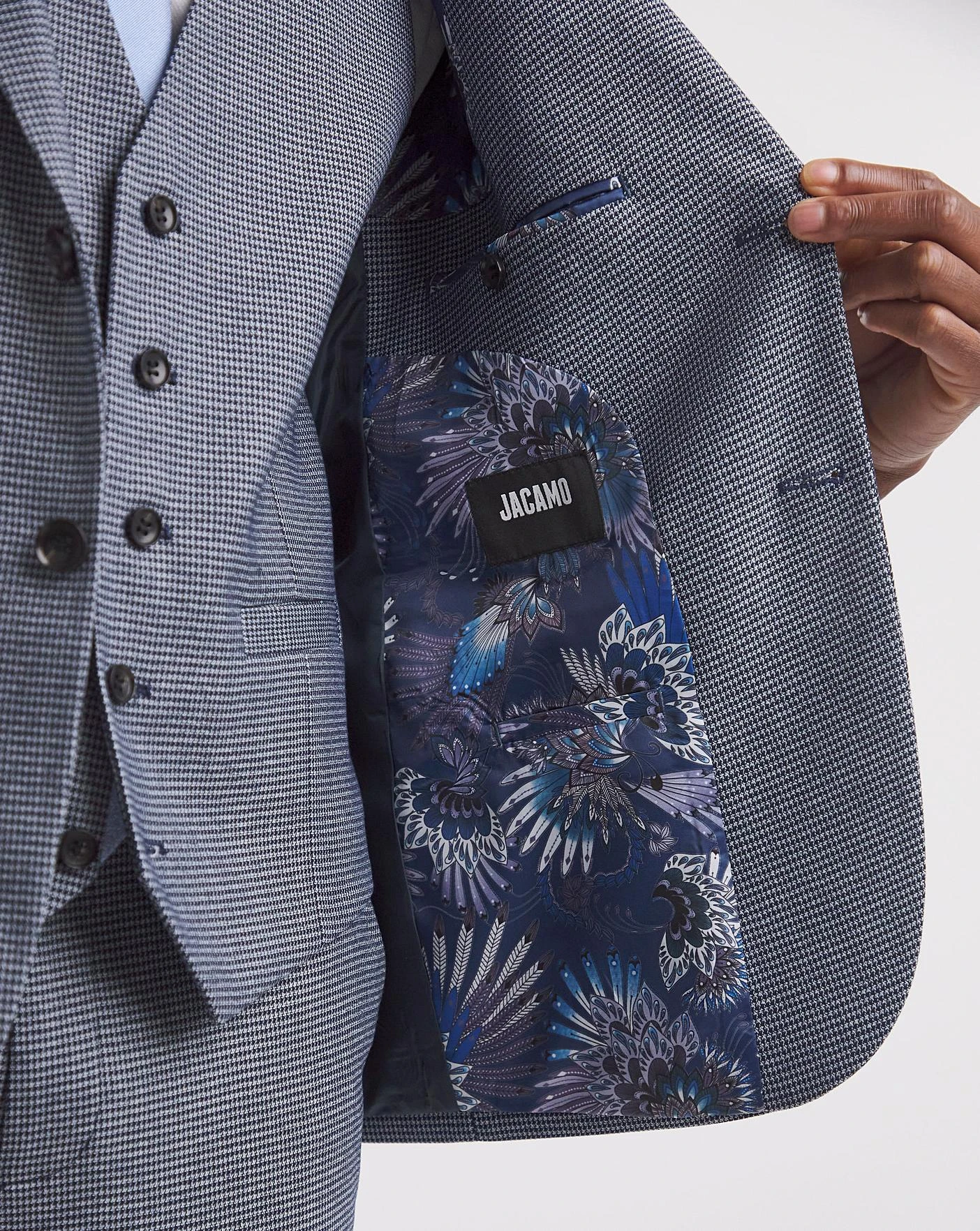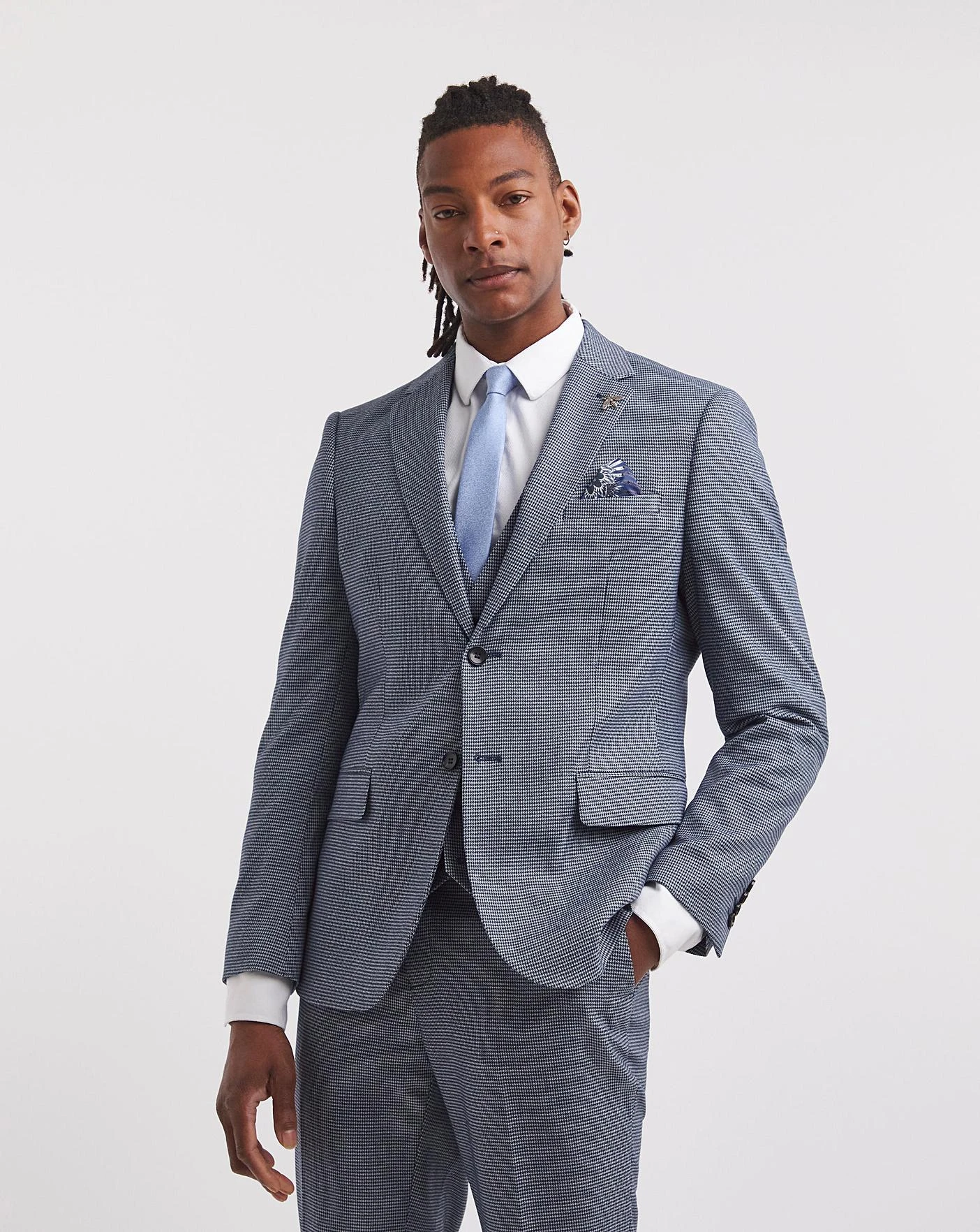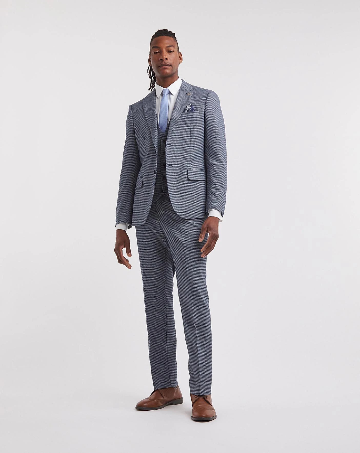 This Lewis Blue Puppytooth Suit Jacket is available in short, regular and long to ensure fit and comfort. Tailoring at it’s best, this new, fresh suit is perfect for the season for any event
