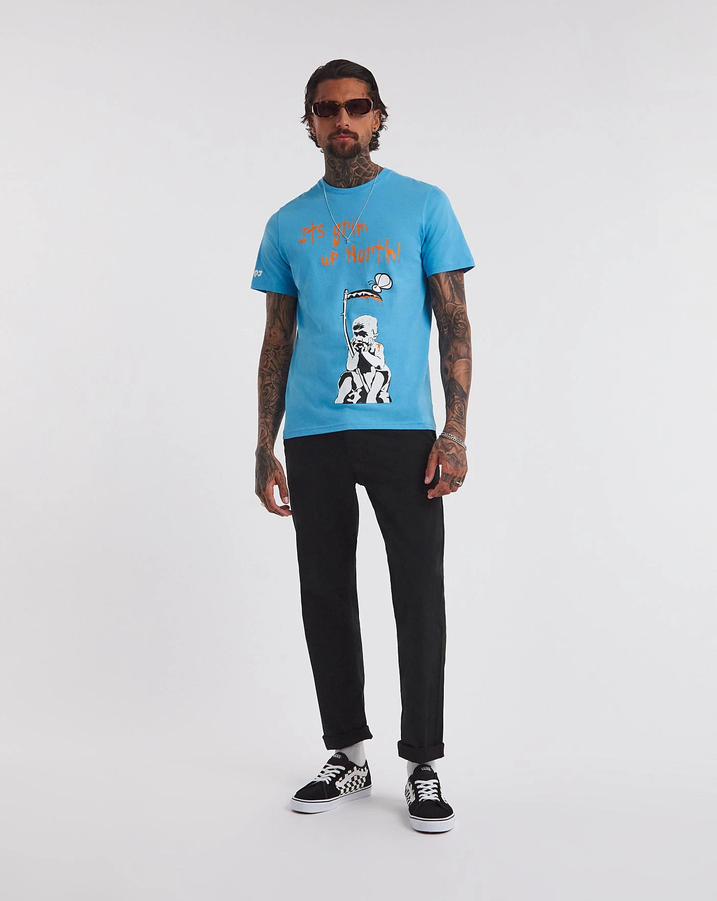 This It’s Grim Up North Graphic T-shirt long in light blue is fresh and new for the season. A new collab with Mr Eggs, the graphic creates a stylish element to any outfit. Made up of cotton, this t-shirt is comfortable and an easy wear for any smart casual occasion.