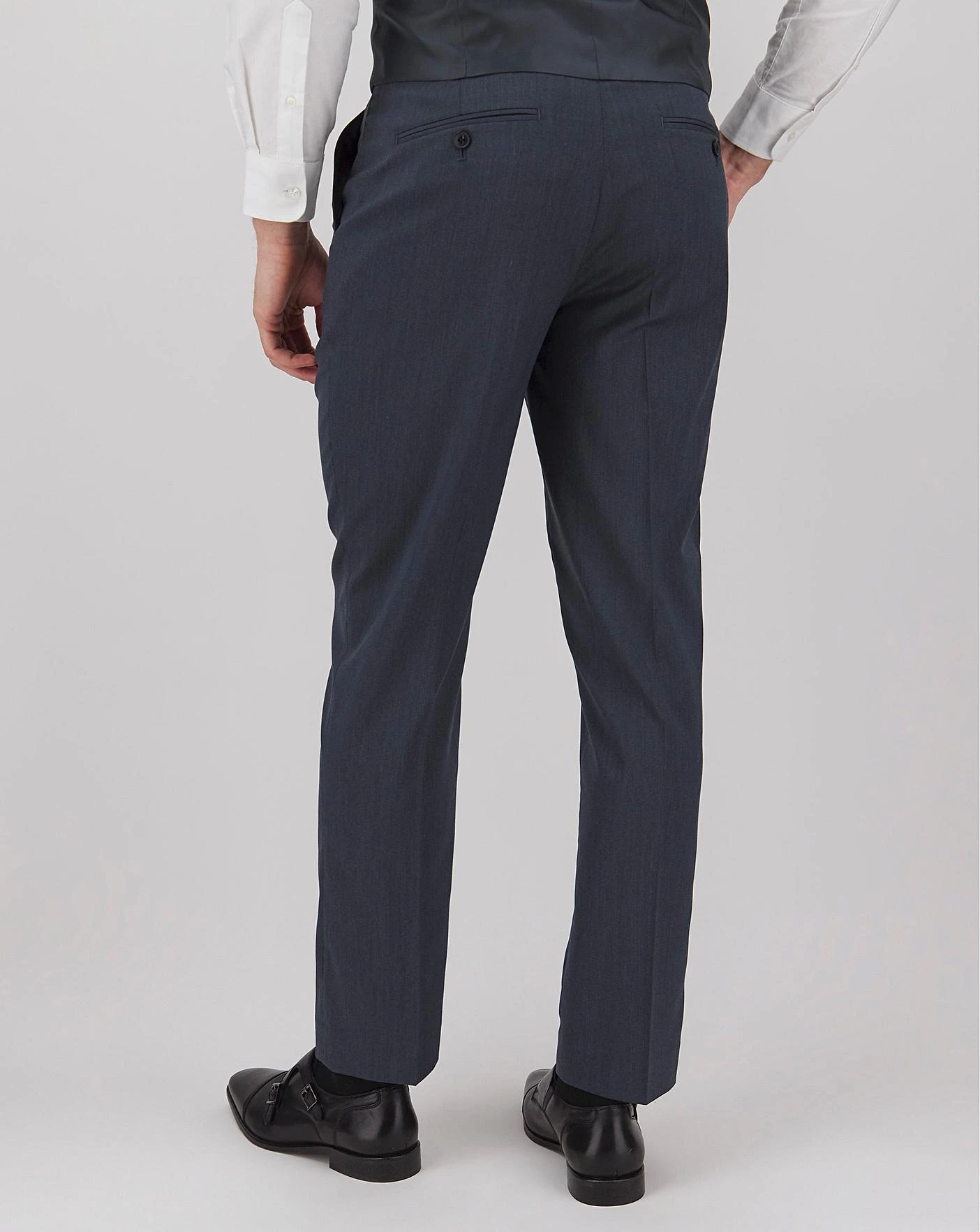 Tonic suit trousers in a regular fit with a choice of three leg lengths, a hook-and-bar/button with zip fly, two side pockets, two buttoned back jet pockets and belt loops.