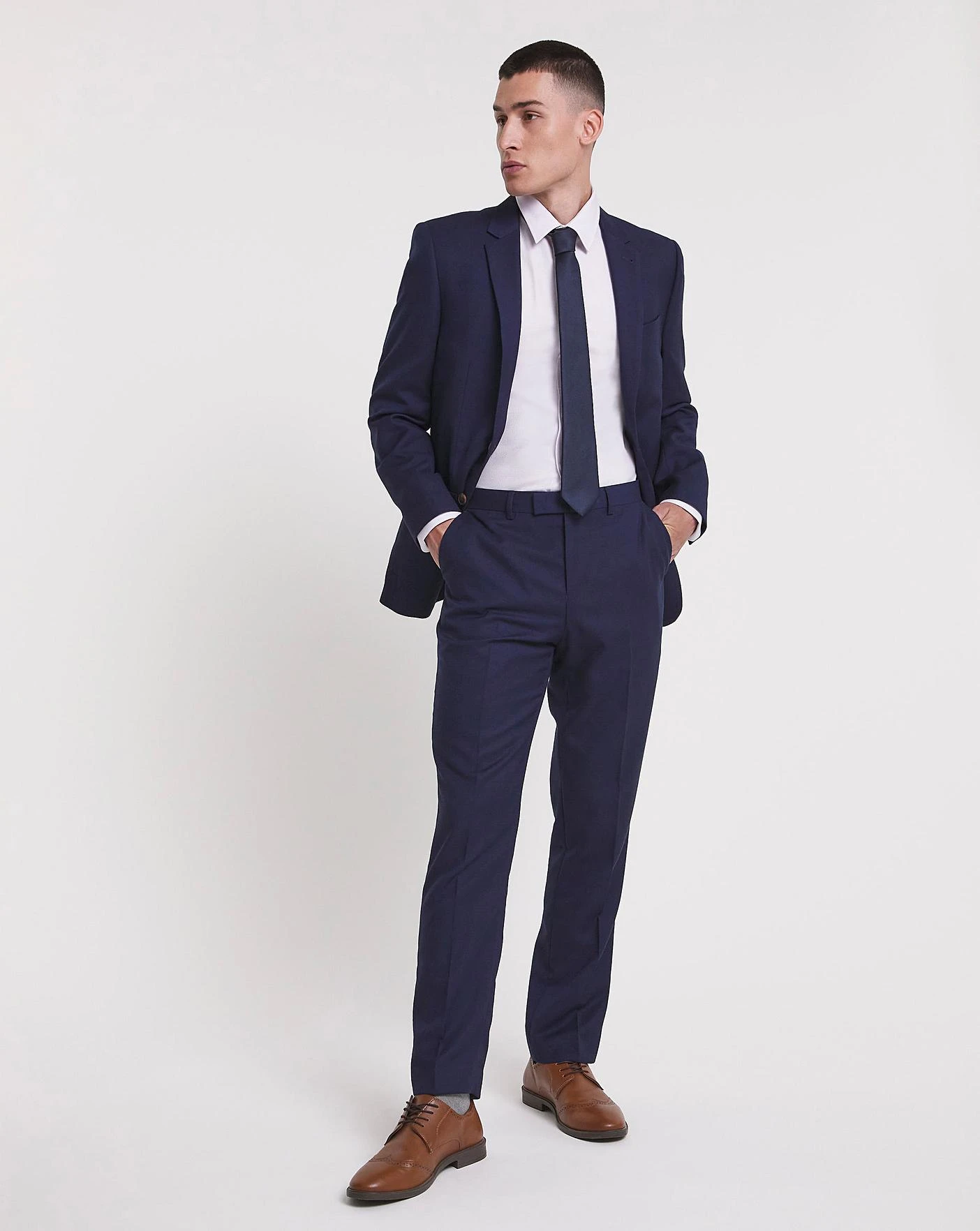 This Linen Look Regular Fit Suit Trouser in navy is great for any occasion this season, whether you are going to a wedding, christening, or just looking for a new suit for the office. Team with matching Jacket to complete the look.