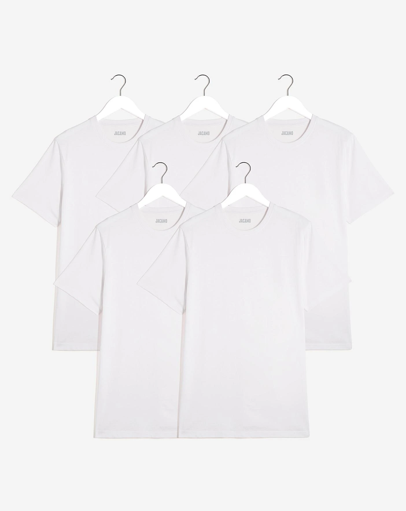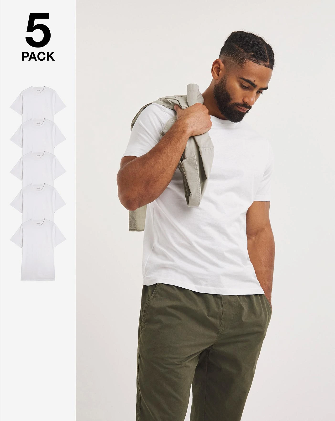Pack of five short sleeve crew neck tees in white. Ideal for layering or lounging or just for a casual look with a pair of joggers or jeans.