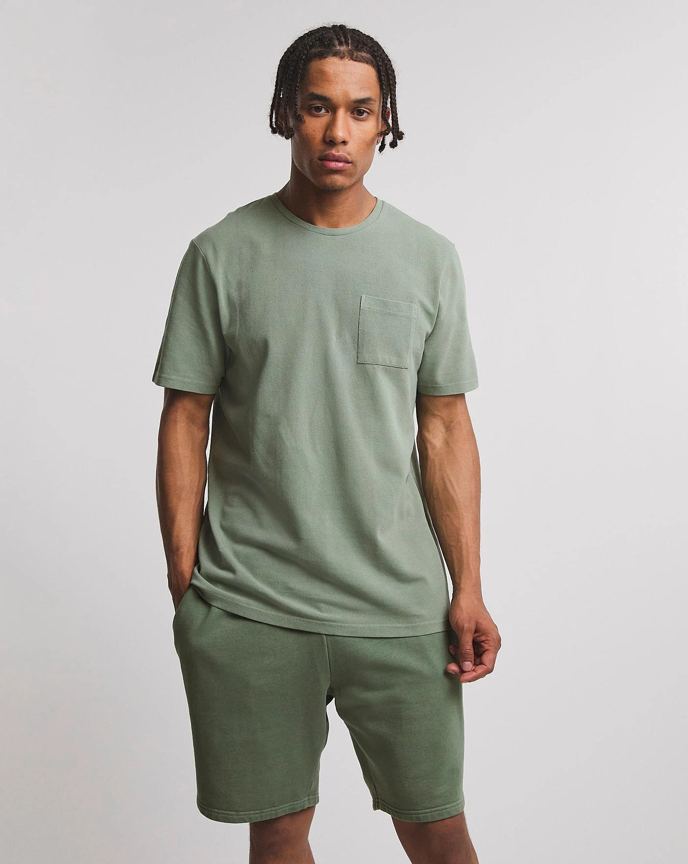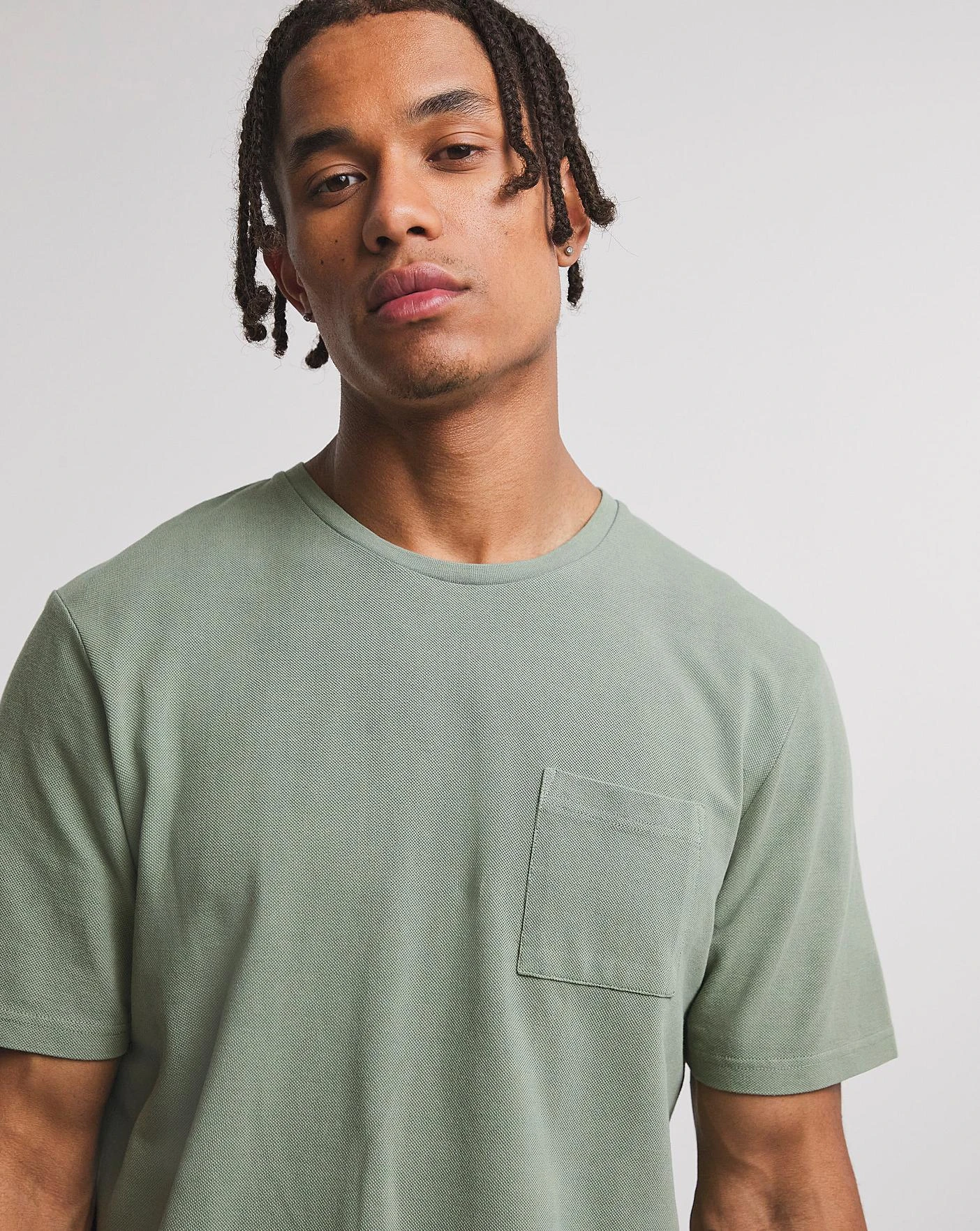 These pique garment dyed t-shirt in a long length and in mid green is the perfect outfit this summer. Pair this with the matching short for a casual trendy look.