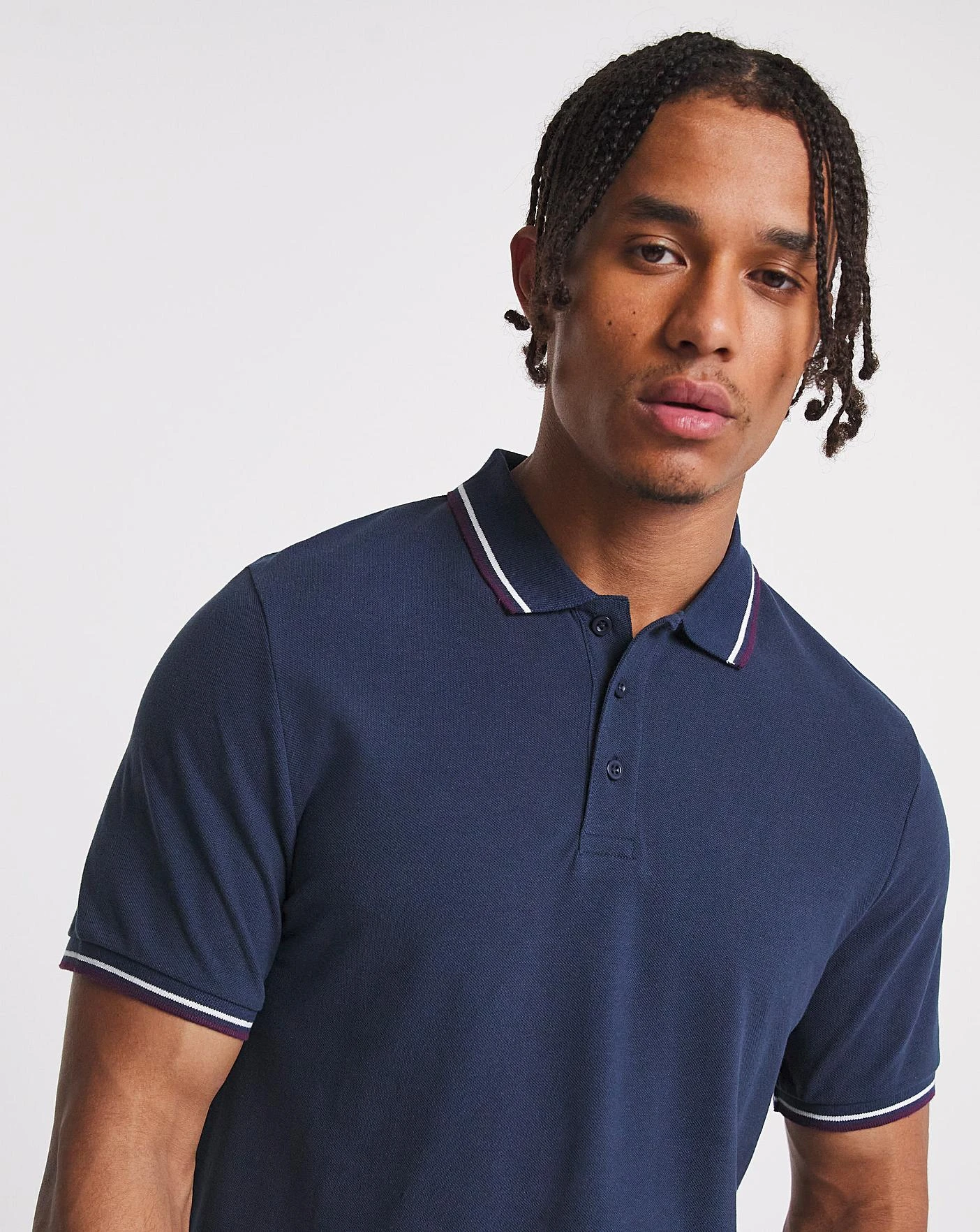 This pique tipped polo in navy is fresh and trendy for the season. Pair with some classic chinos for a smart casual look.