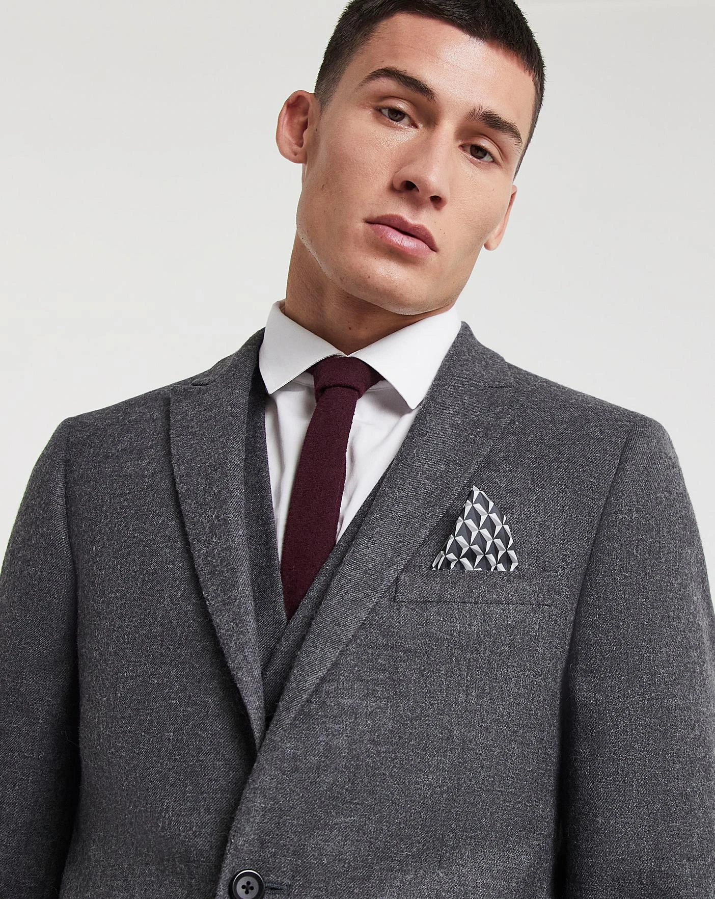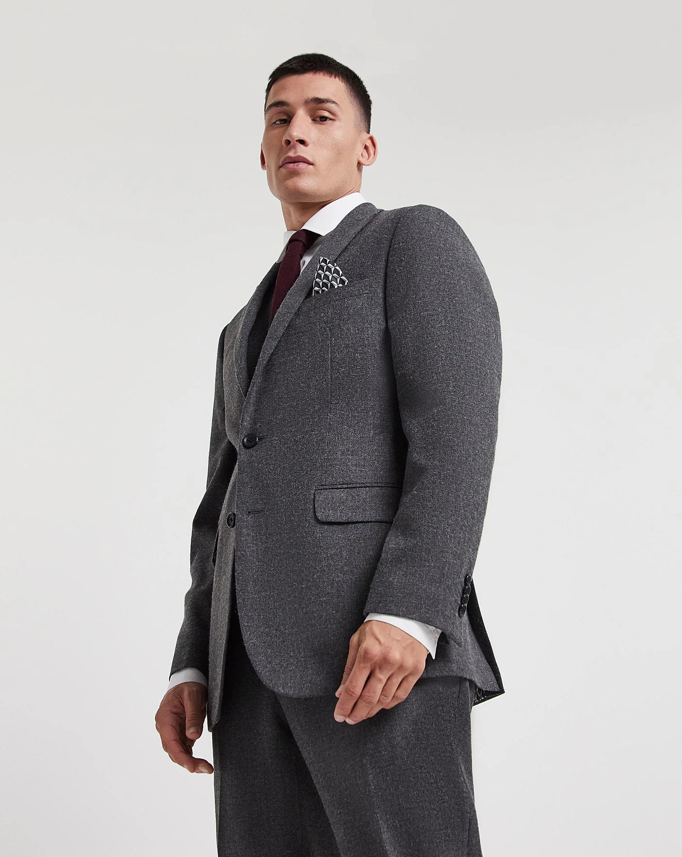 This Plain Brushed Flannel Suit Jacket in charcoal is stylish and fresh for the season. Pair with the matching suit trousers for a smart look for any occasion or party.