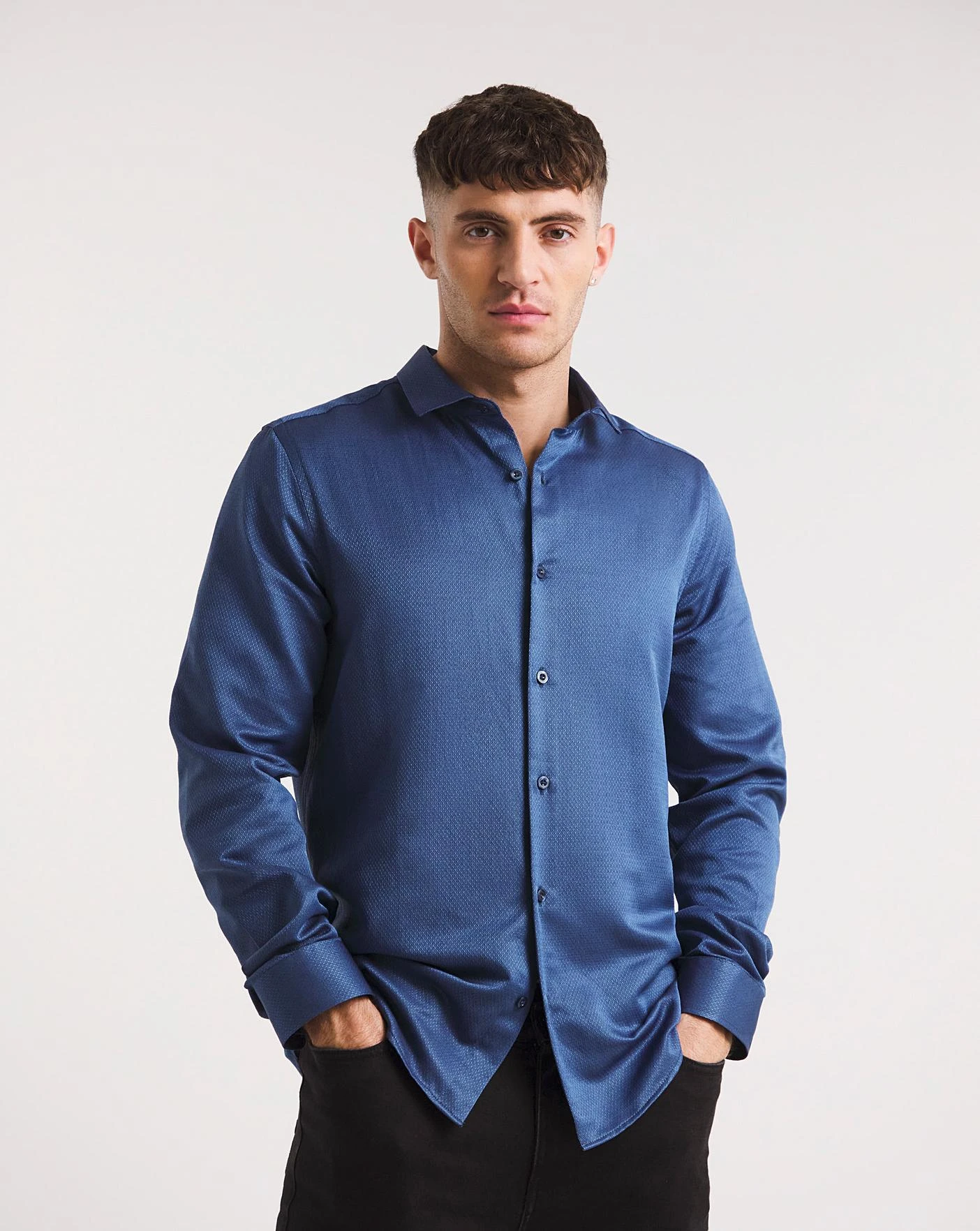 Jacamo party shirt in blue. Perfect for the christmas party season. Pair it with some black smart trousers and smart shoes for a stylish party look.