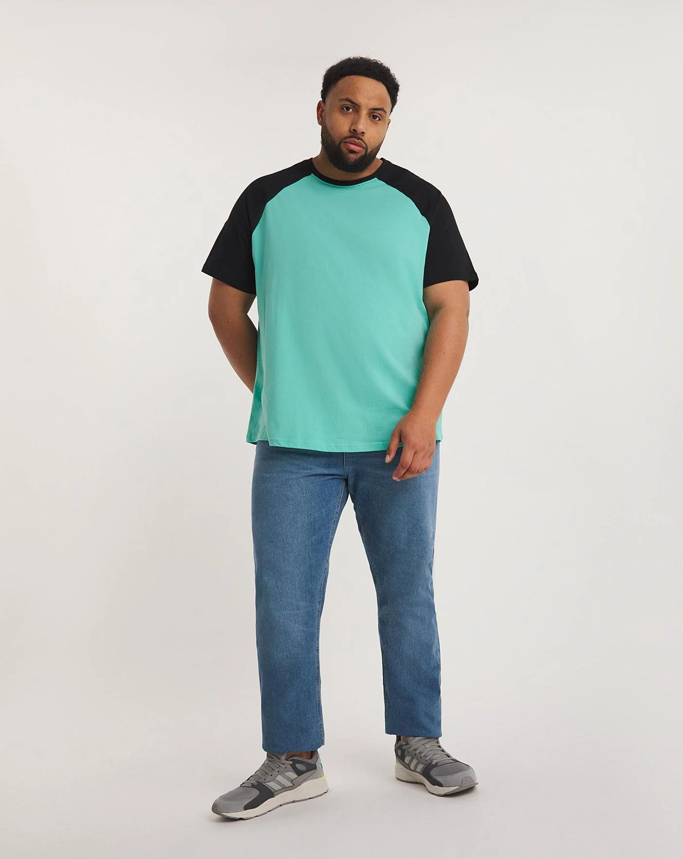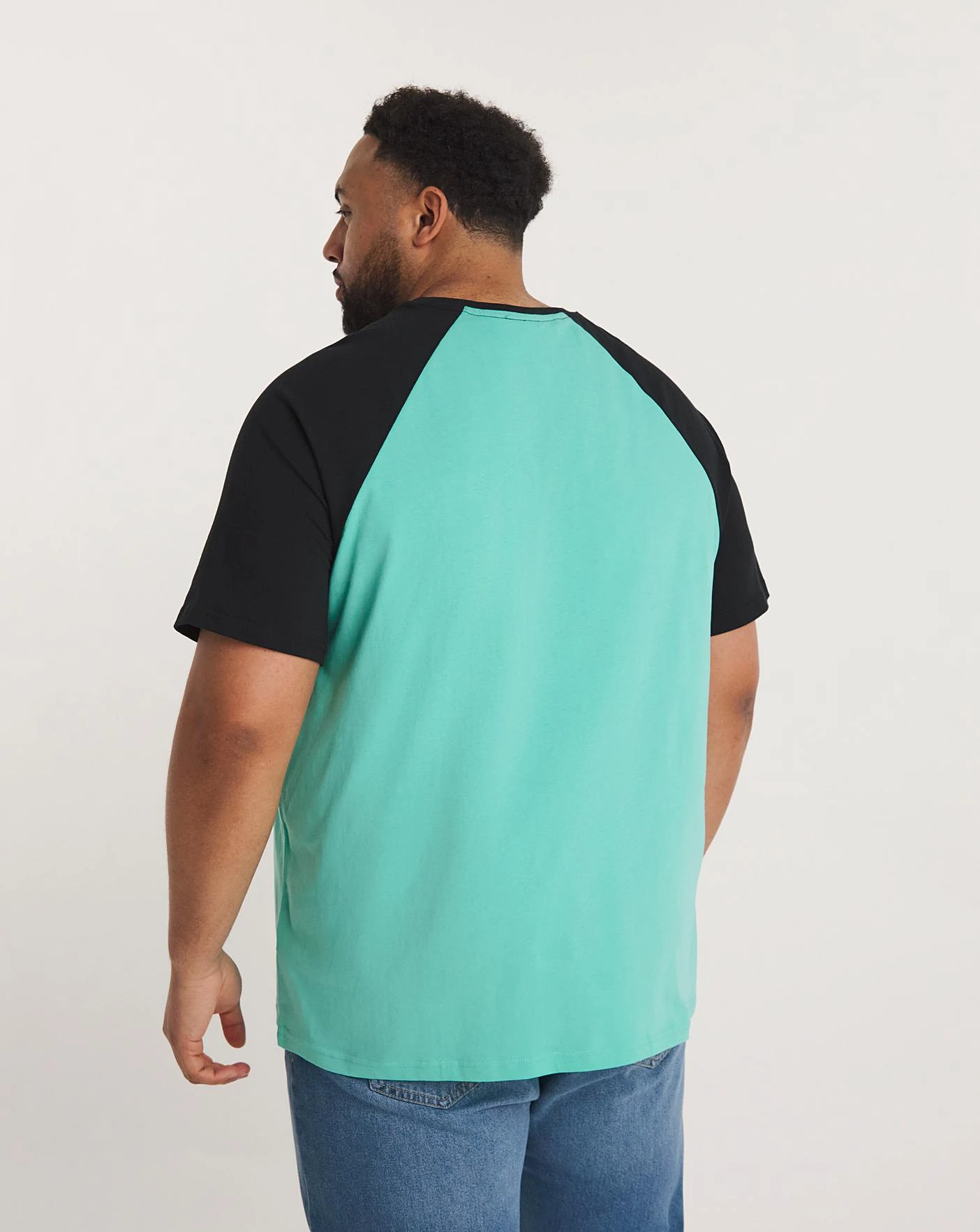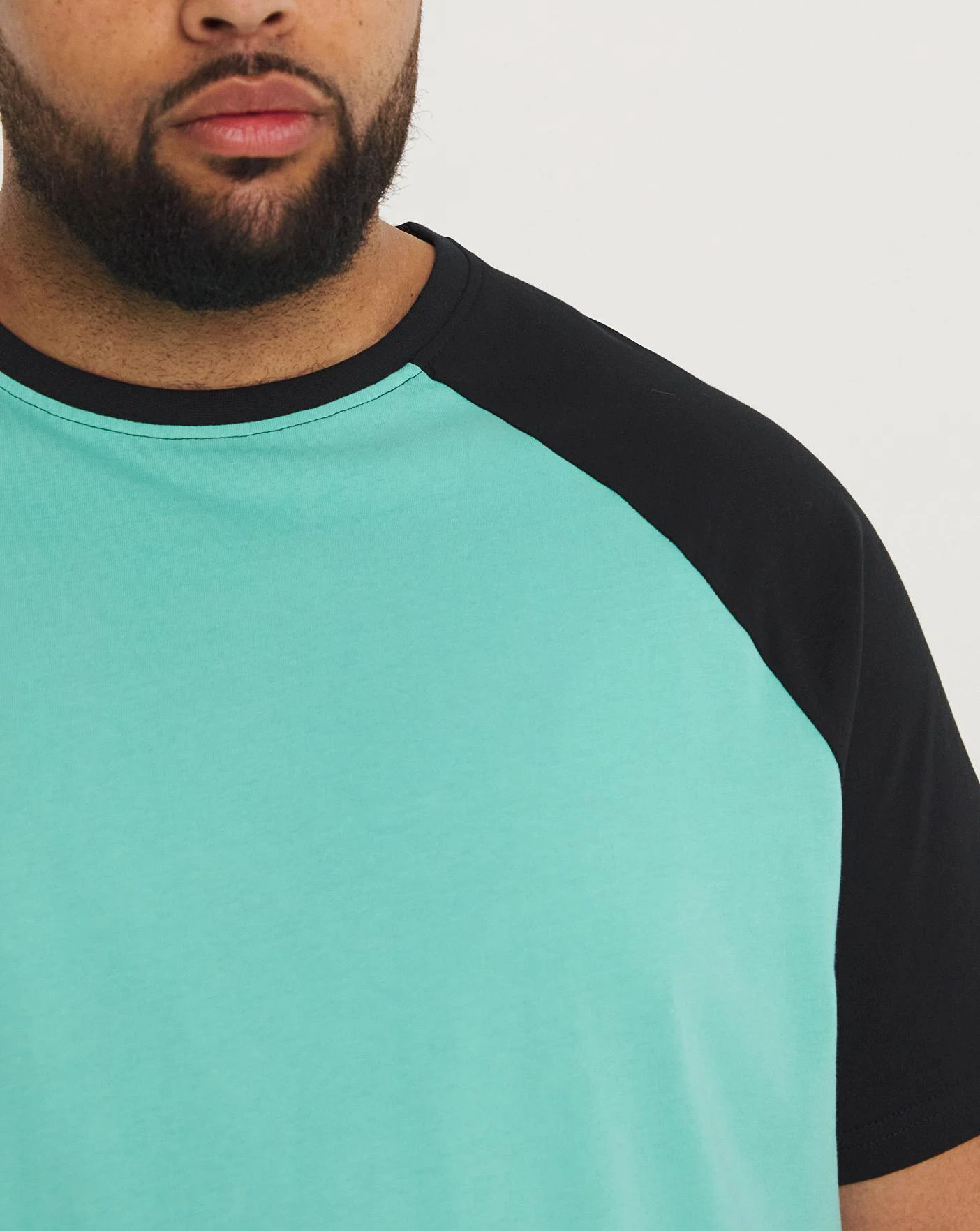 This Raglan T-shirt in aqua and black is fresh and exciting for the season. This is breathable and comfortable for casual occasions.