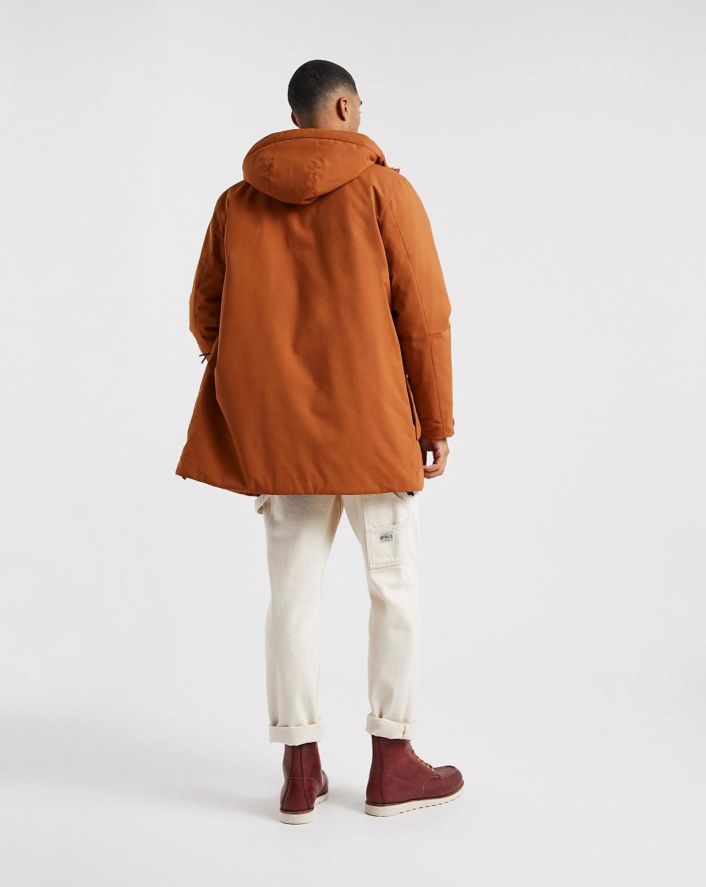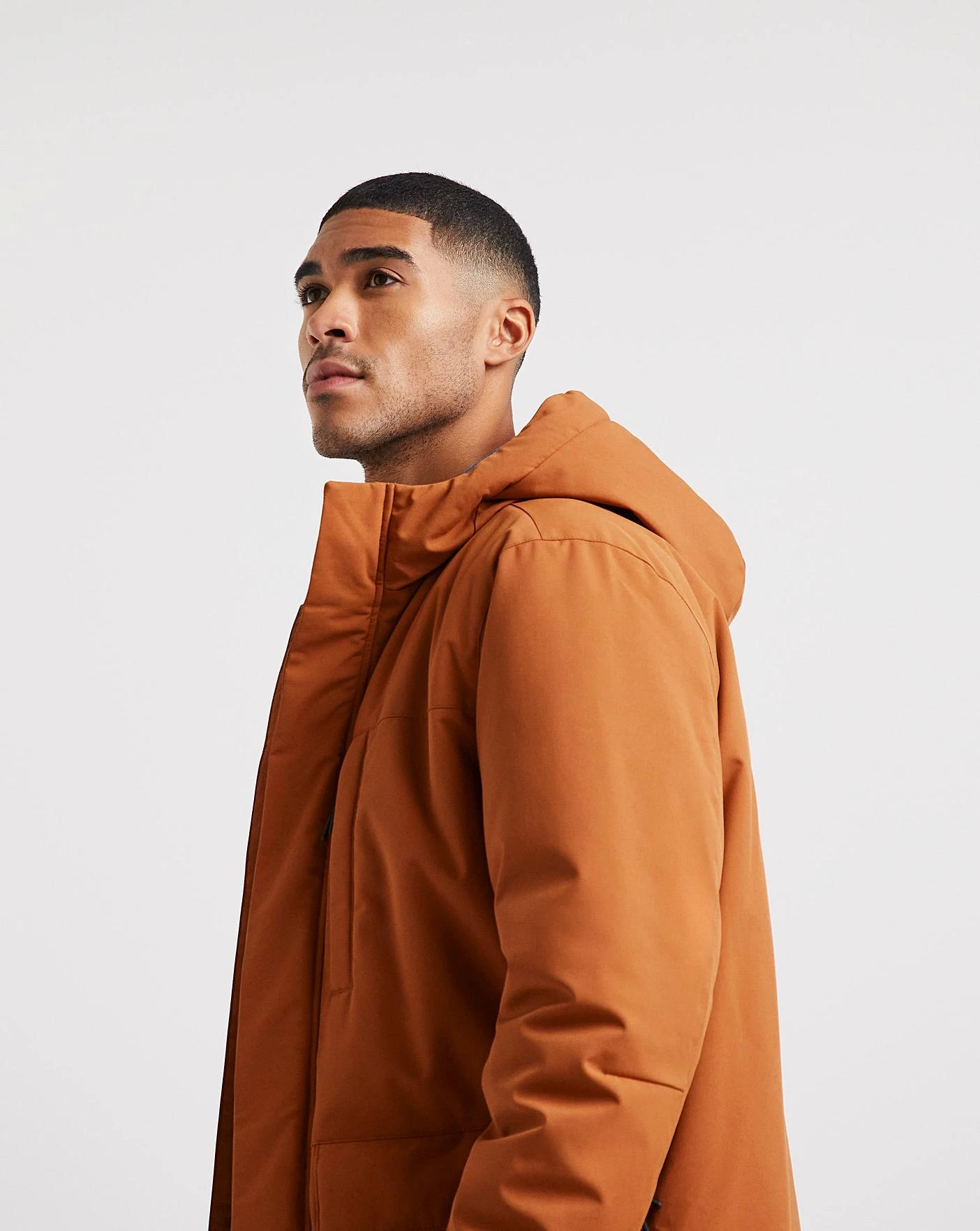 This warm rust coloured padded parka is the perfect coat to keep you snug as temperatures cool. It features many pockets and compartments which is really useful for storing your belongings and keeping them safe on the move. It also features a hood with a drawstring fastening so you can keep your head and ears protected from wind chill.