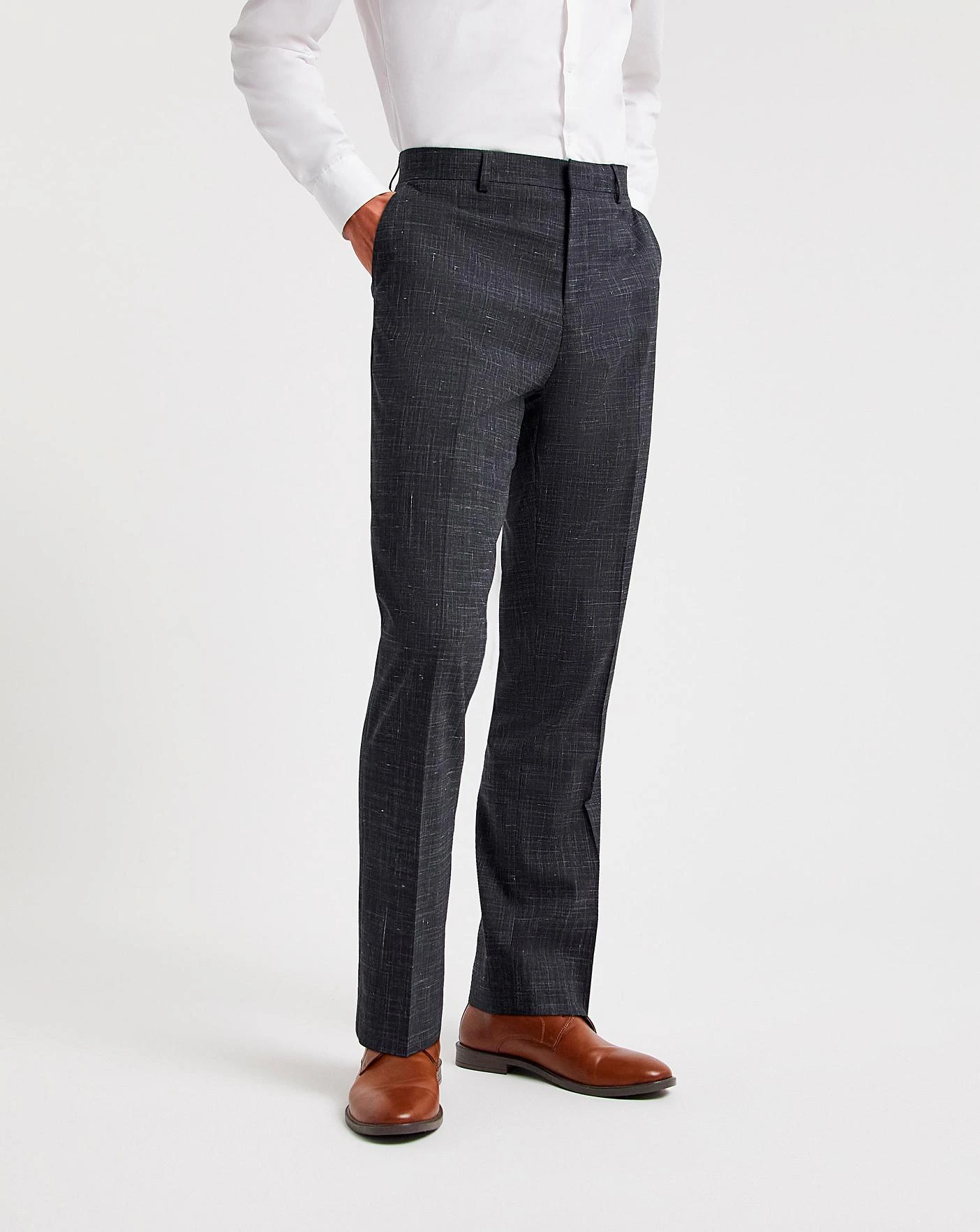 This Semi Plain Textured Suit Trouser is stylish and new for the season. Pair with the matching jacket for a fresh and smart look for any occasion this season.