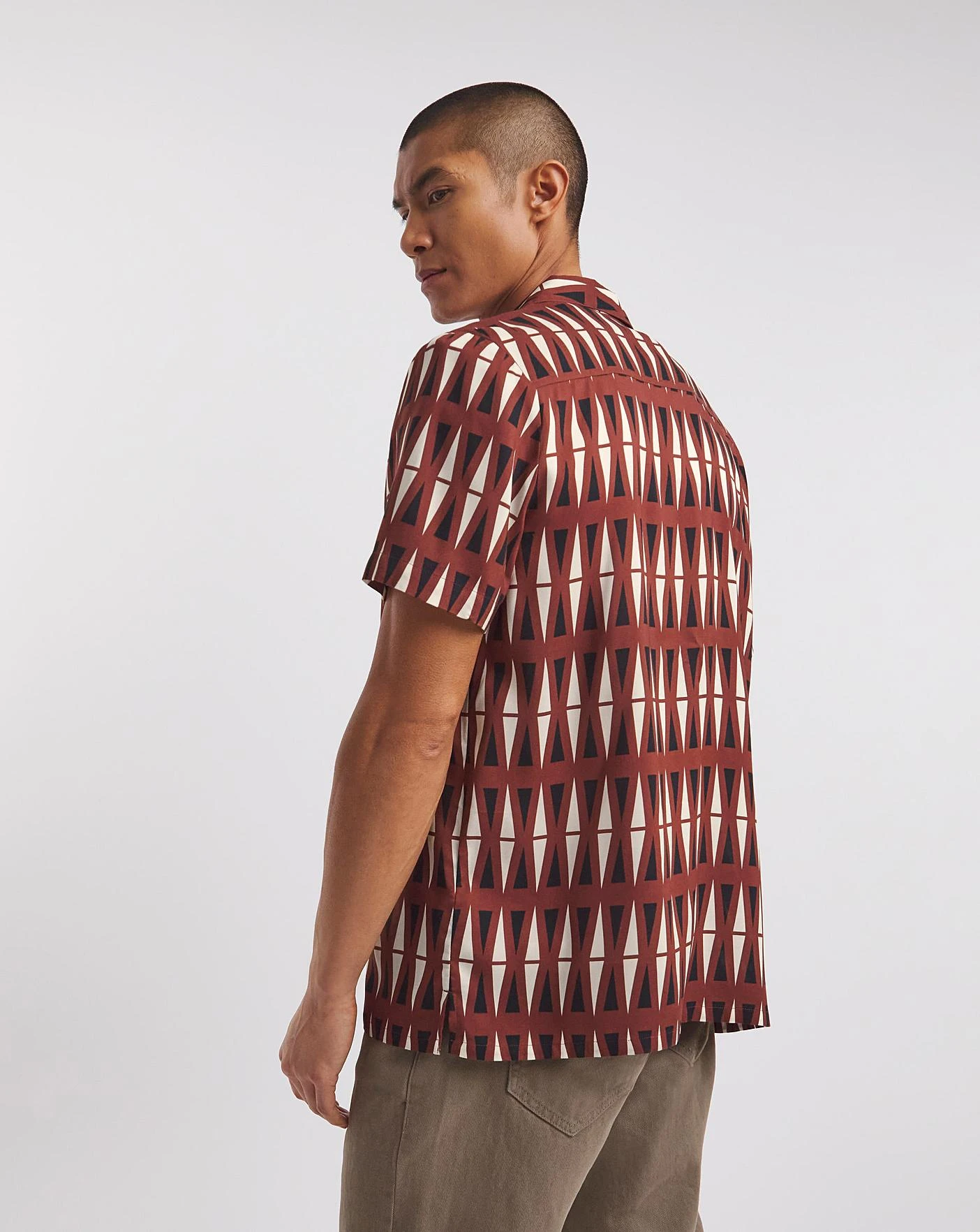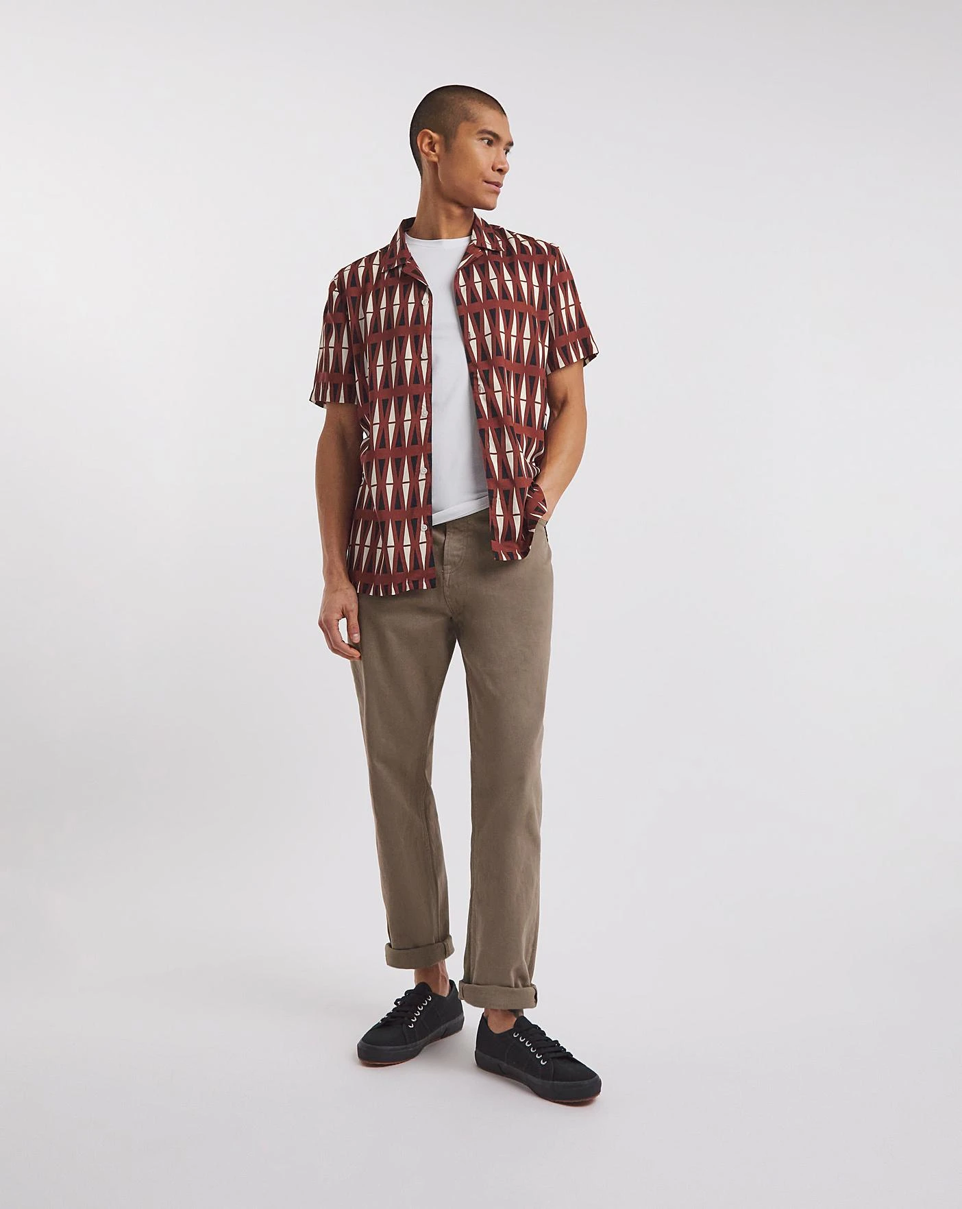 This Jacamo short sleeve retro geo print revere collar shirt is a great shirt to have this season. Pair it with some chino shorts and sandals for a cool look.