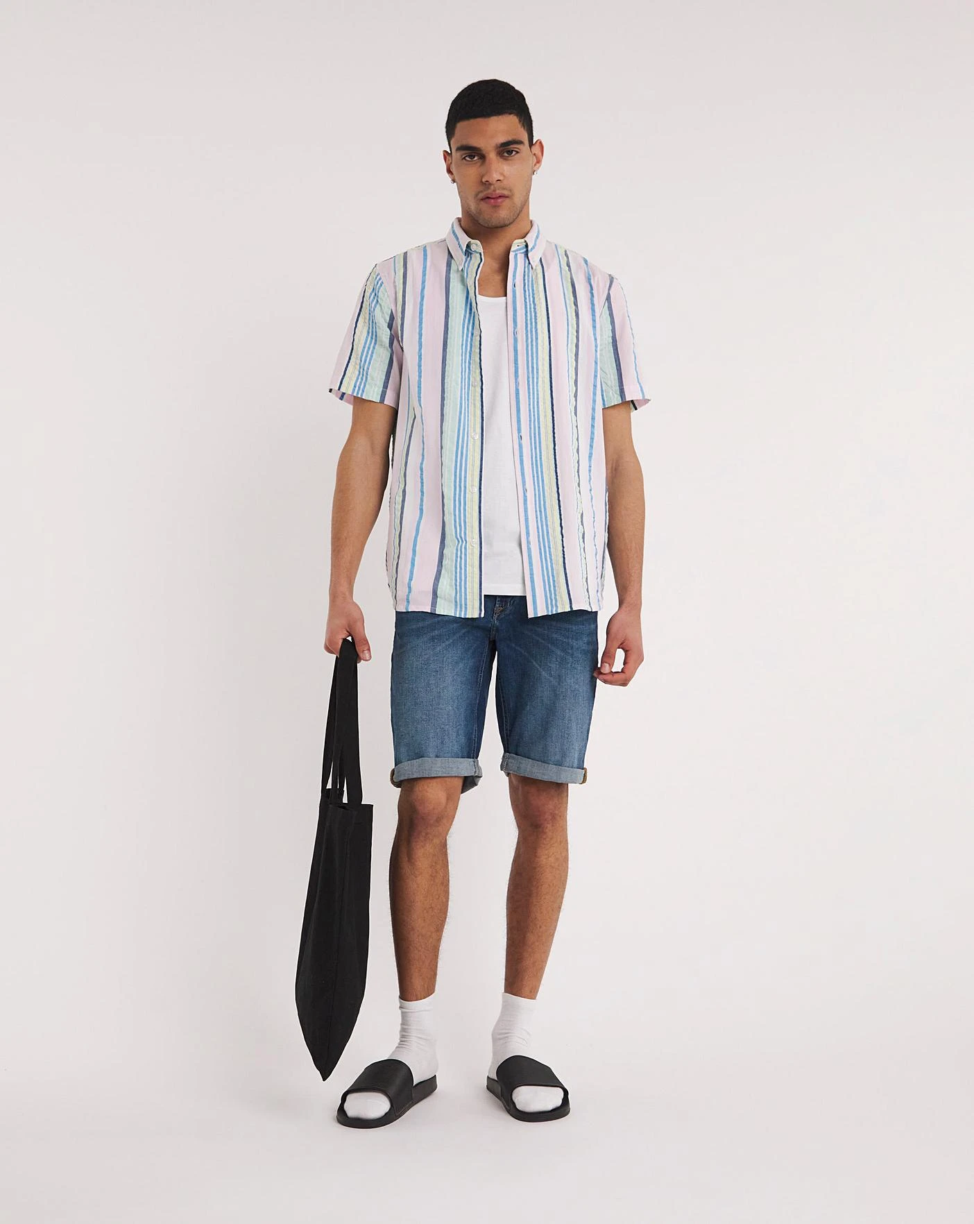 This Jacamo short sleeve pastel stripe shirt in multi is a great shirt to have this season. Pair it with some chino shorts for a cool look.