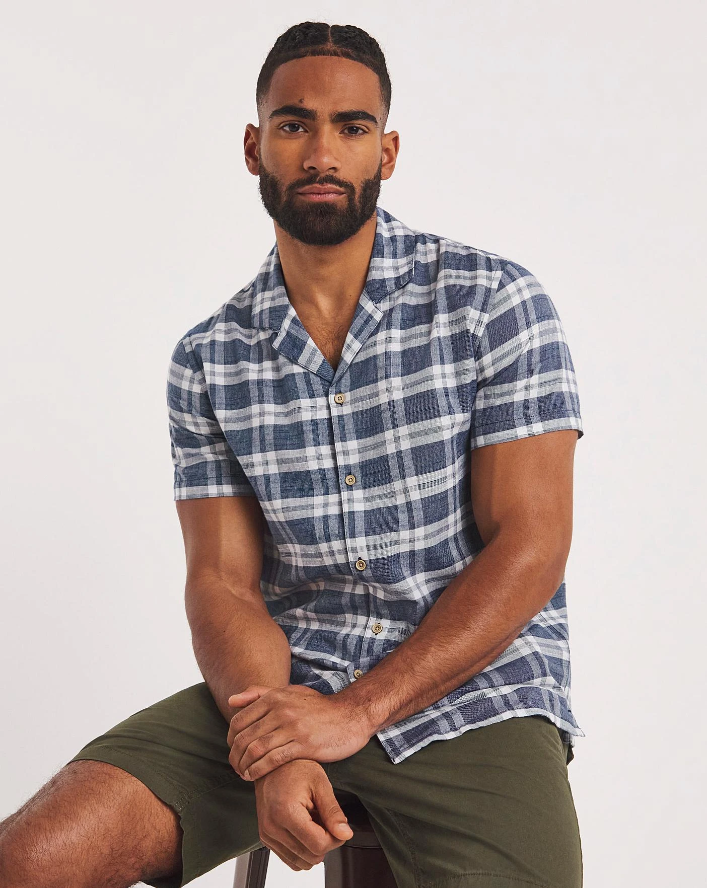 This Jacamo short sleeve slub check shirt in blue is a great piece to have in your wardrobe this season. Pair it with some denim shorts and sandals for a cool look.