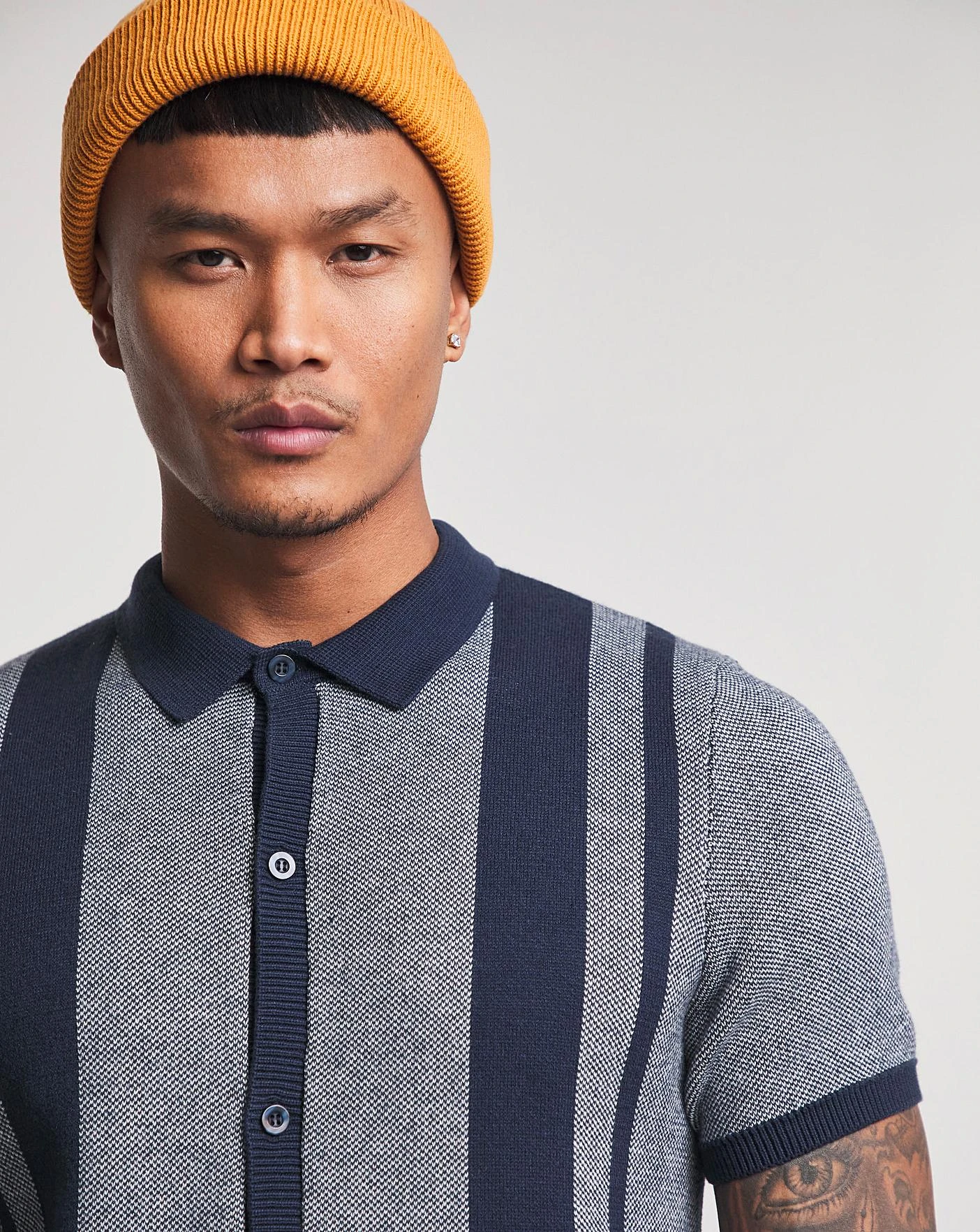 This navy short sleeve button up cardigan can be worn alone or layered over white tees and polos tops. This elevates your outfit whilst you still remain totally comfortable.