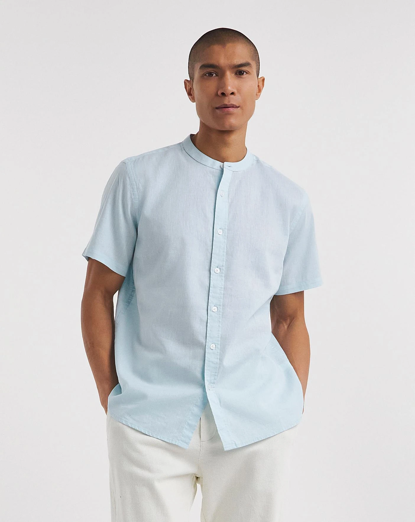 This Jacamo short sleeve grandad linen shirt in light blue is a staple item to have in your wardrobe this season. Perfect for everyday and goes with any outfit.