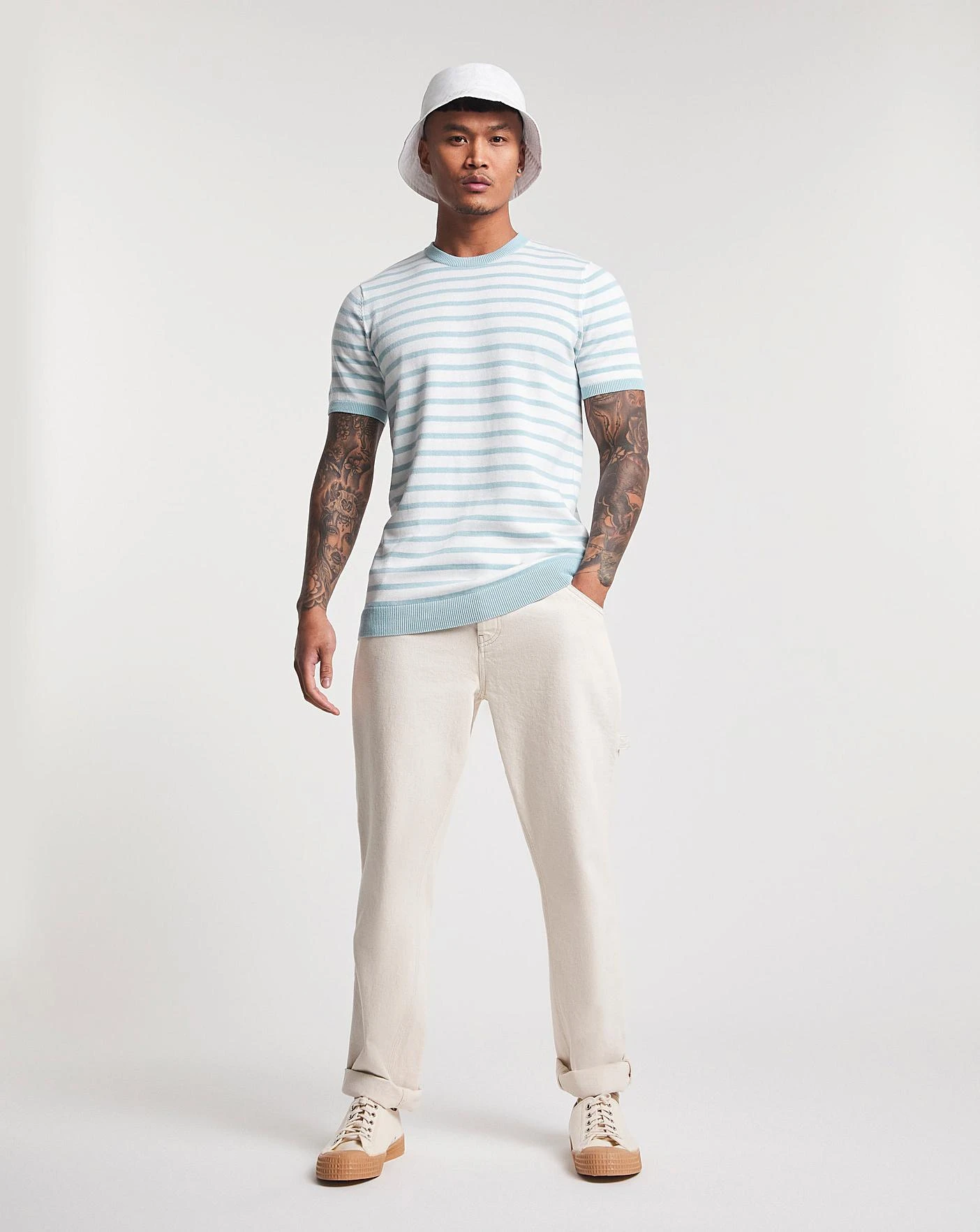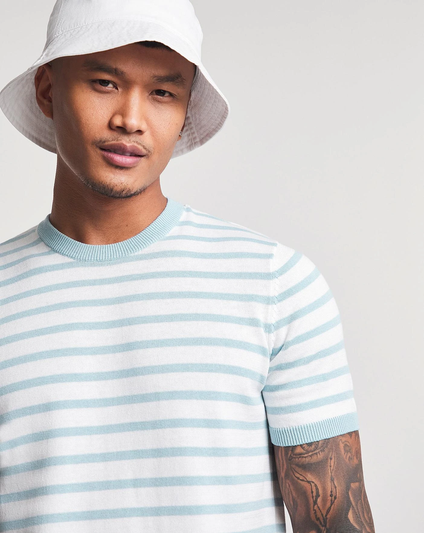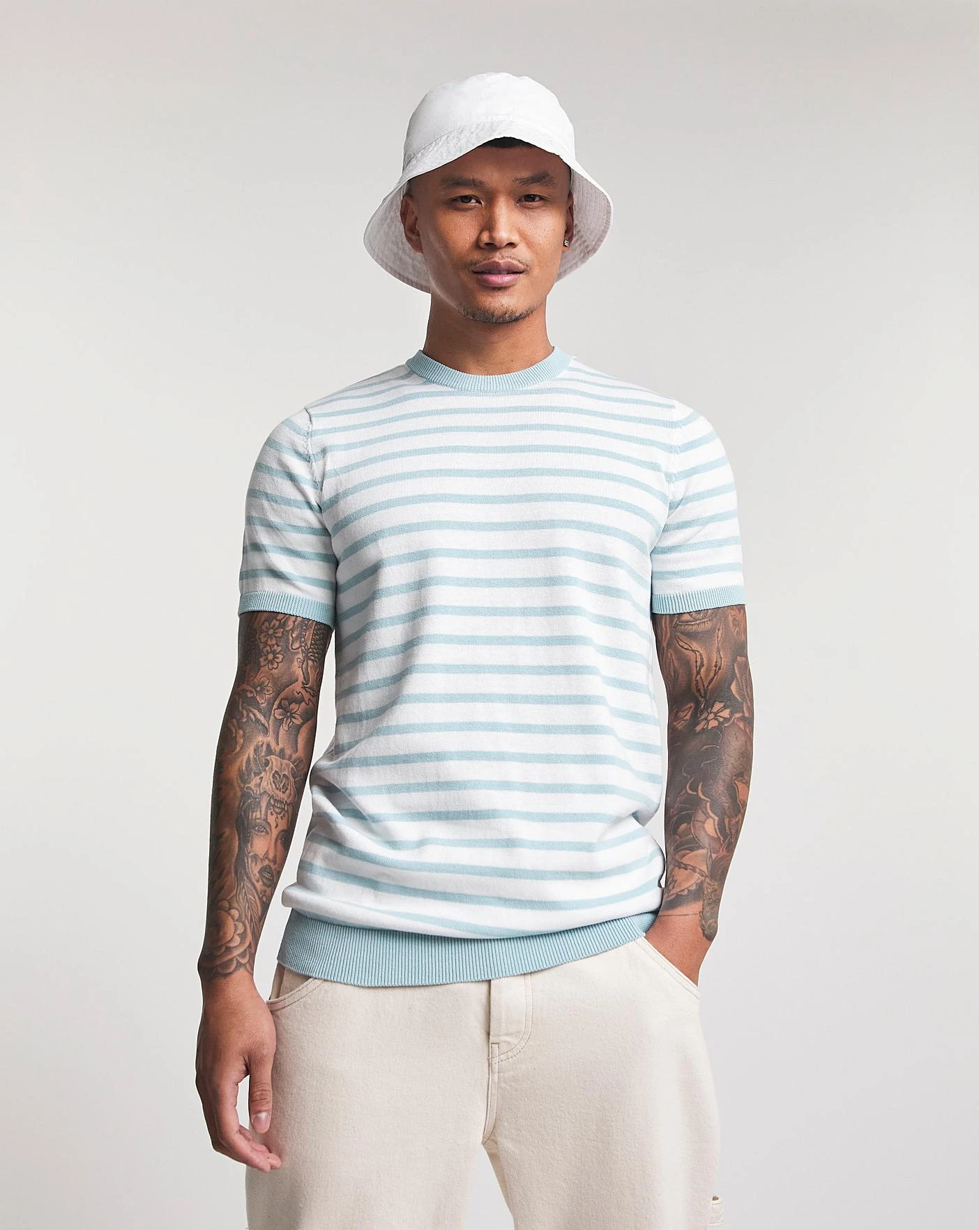 Stripe Knitted T-shirt in light blue is an essential for this season. Made up of Cotton, this allows for a soft, comfortable and durable T-shirt.