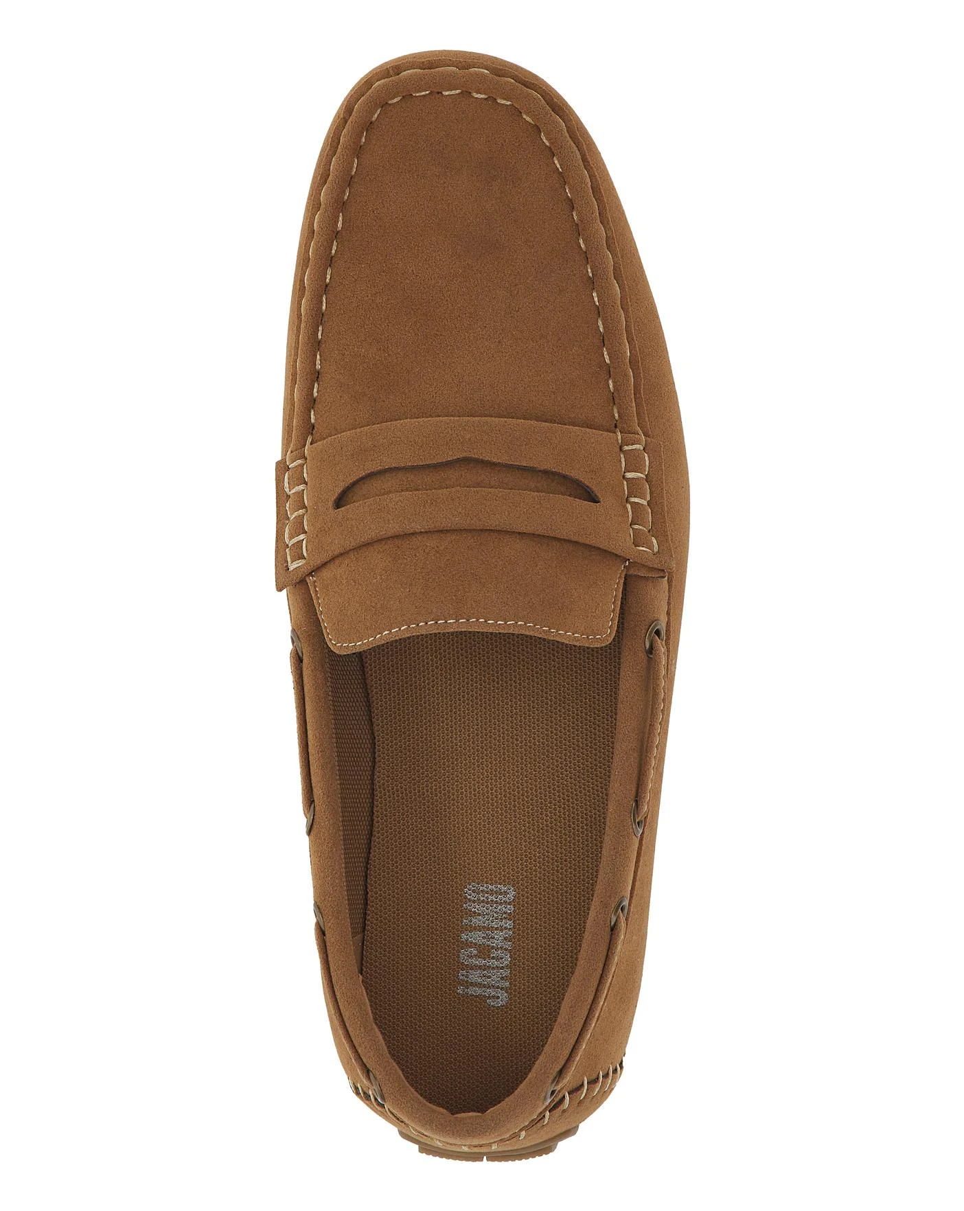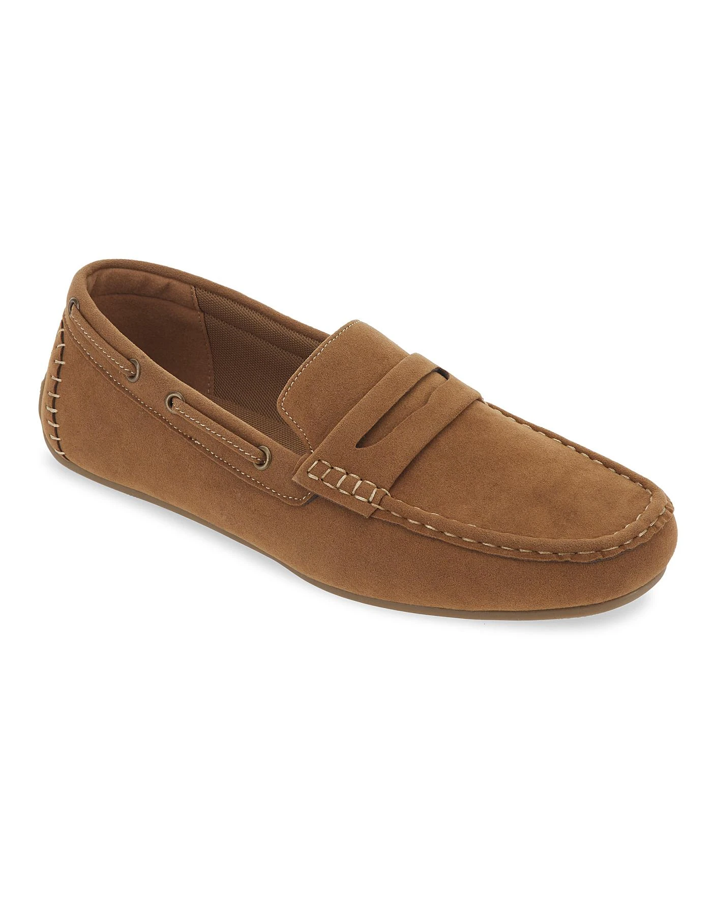 Classic driving moccasin in brown suede look upper with gum rubber outsole. A comfortable slip on style that is elegant and refined. Wear with chinos and your favourite shirt.