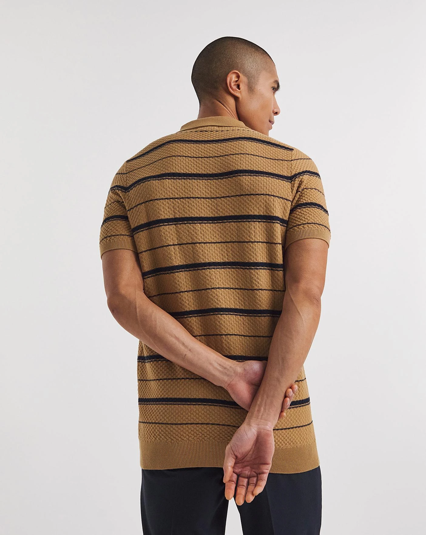 Dress up or down this new staple. The tan textured striped polo is a great alternative to your classicly styled polo and can be worn all year round. By choosing to shop BCI cotton your supporting Jacamo’s investment in Better Cottons mission. This product is sourced via system of mass balance and therefore may not contain Better Cotton.