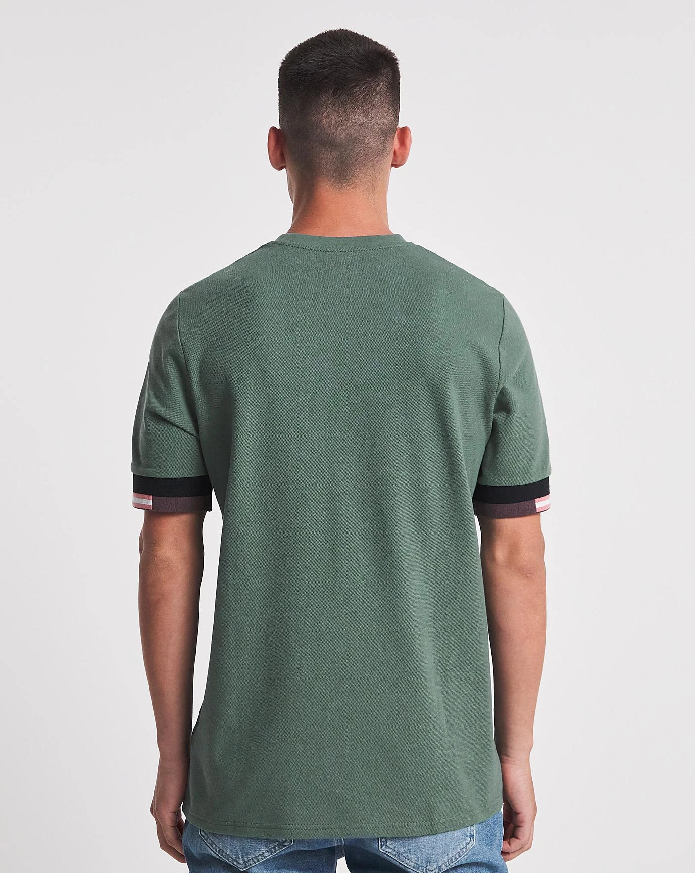This Green Tipped Pique Smart T-shirt in a long length paired with classic jeans from our denim collection is great for any smart casual occasion.