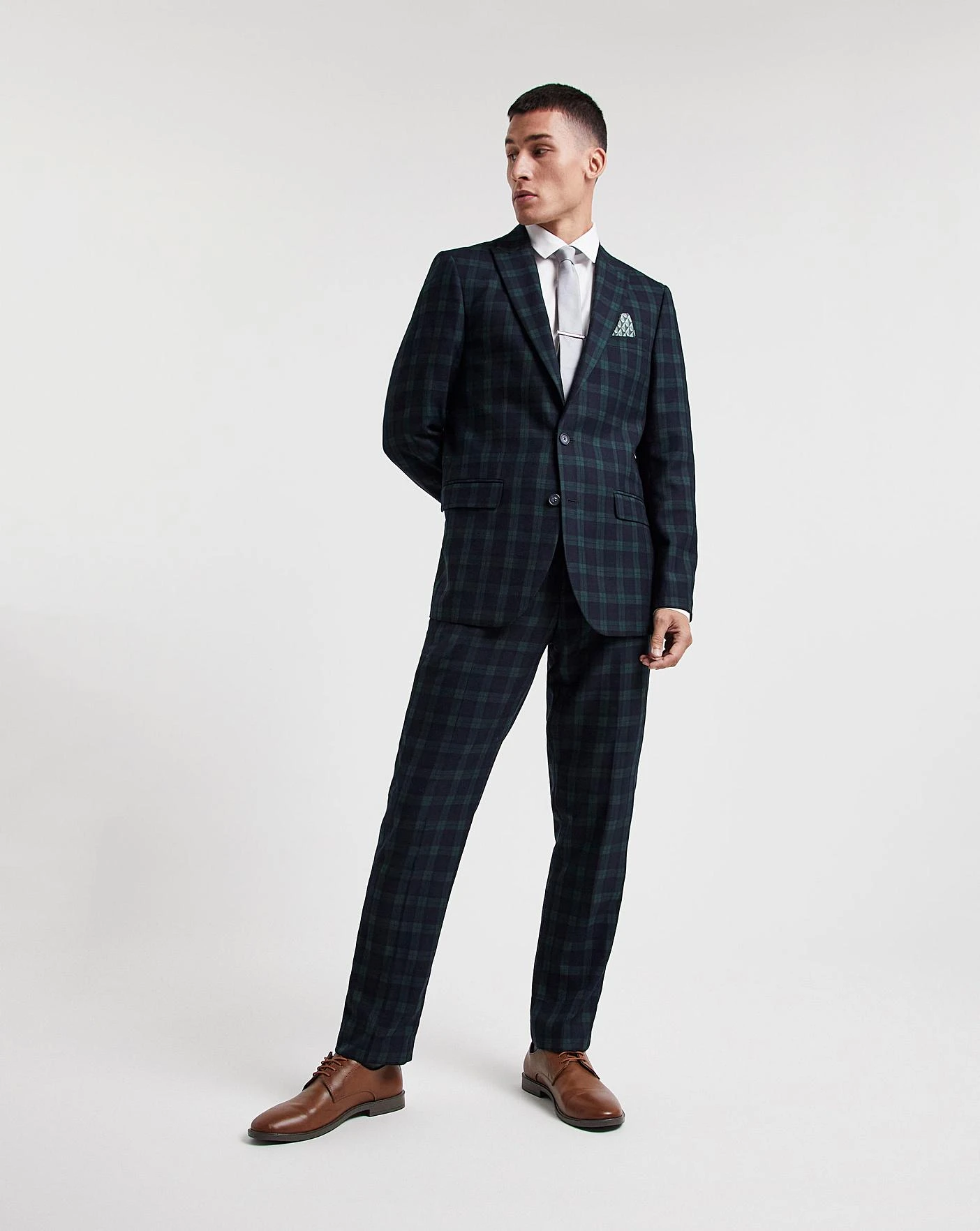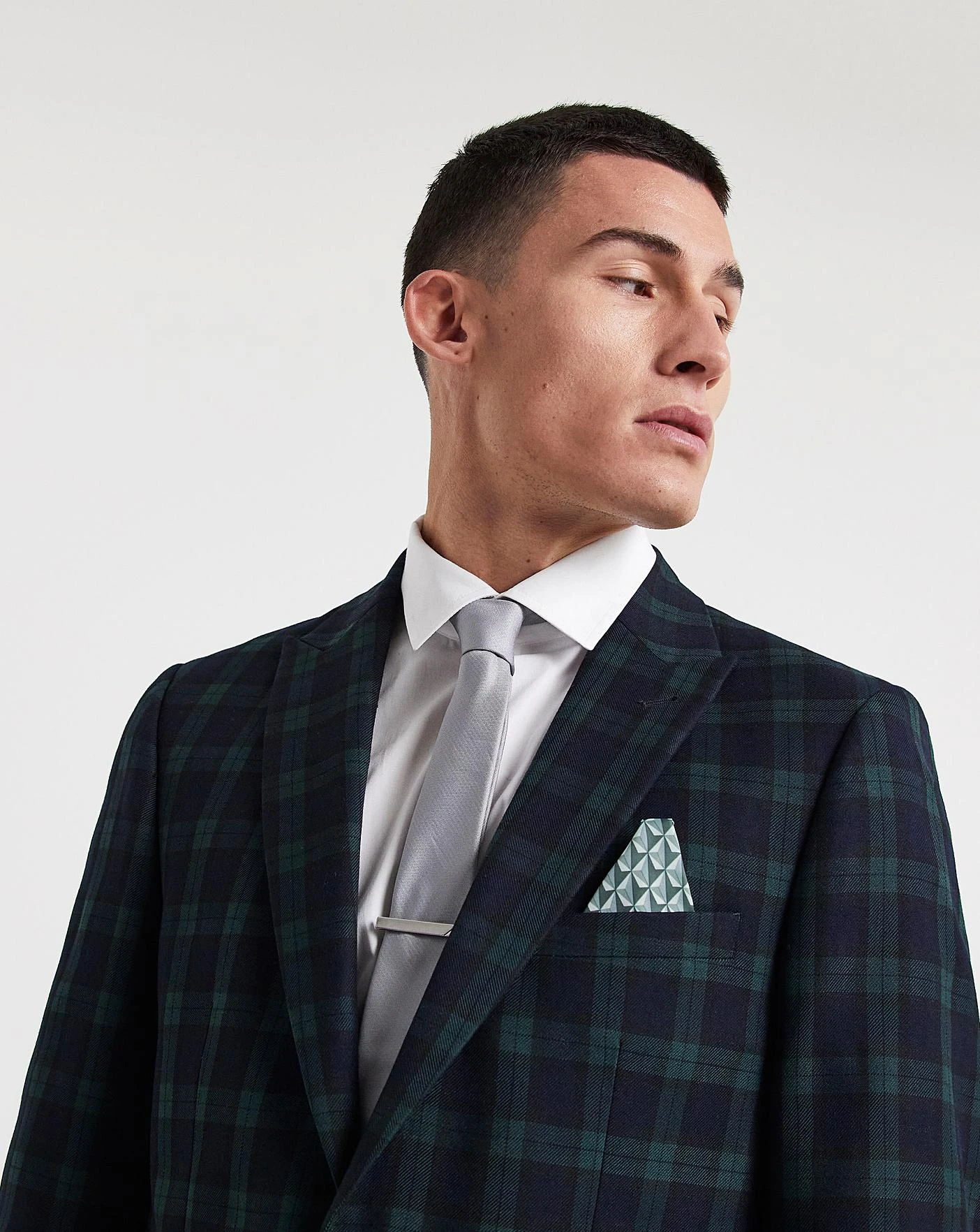 This tonal taran check suit jacket is smart and fresh for the season. Paired with the matching suit trousers, this style is great for any occasion this season.
