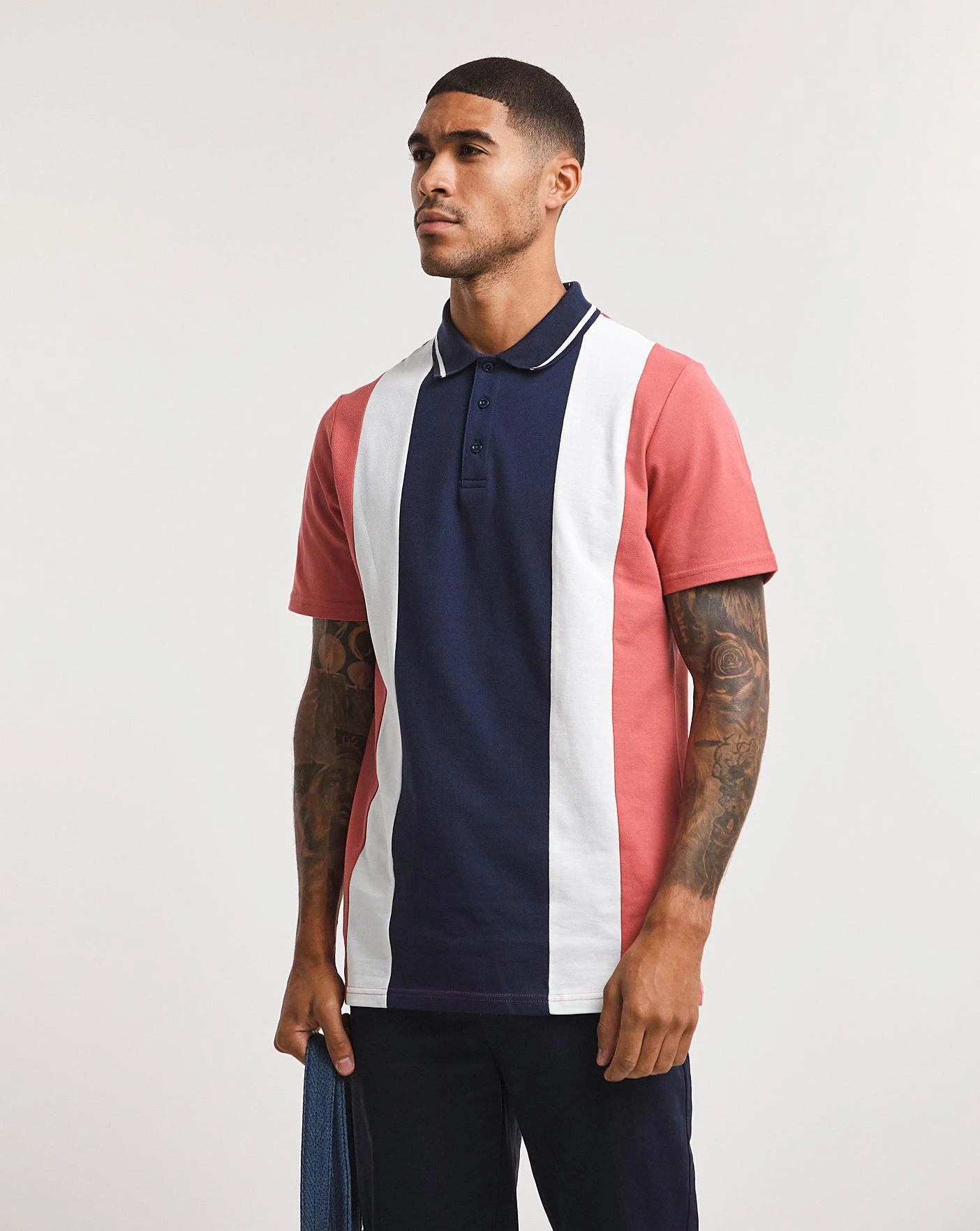 This vertical colour block polo in pink and navy is fresh and stylish for the season. Pair with some chinos or jeans from our collection for a smart casual look.