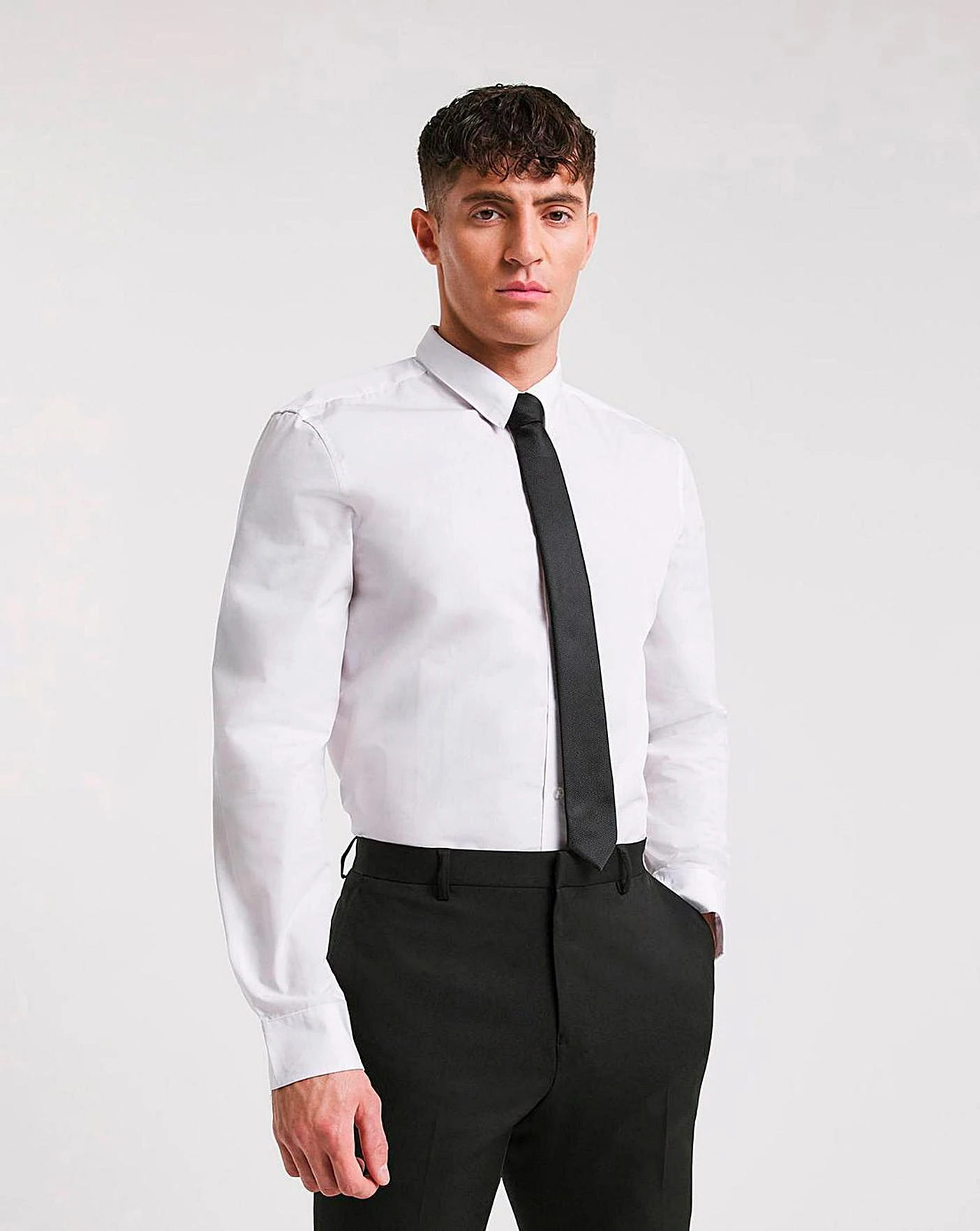 This long-sleeved plain formal shirt is perfect to pair with your favourite suit. Featuring a button front fastening and button cuffs, its easy to adjust to fit how you like. Available in three lengths.
