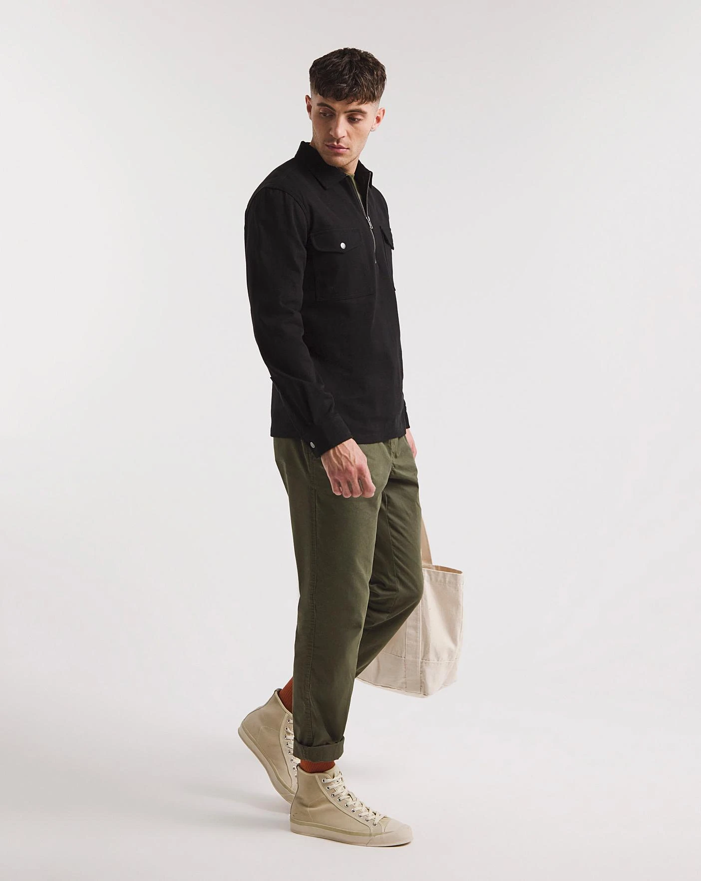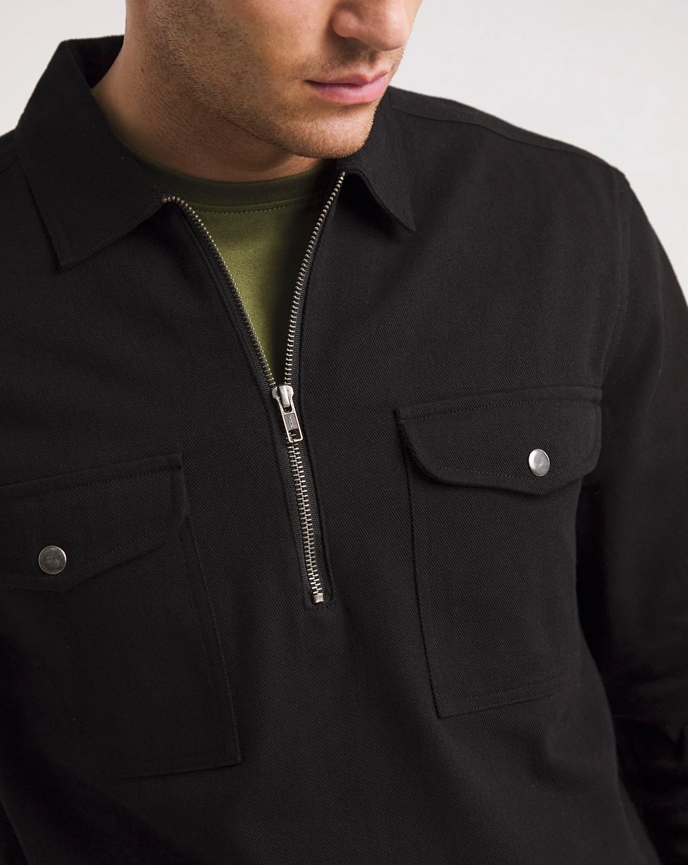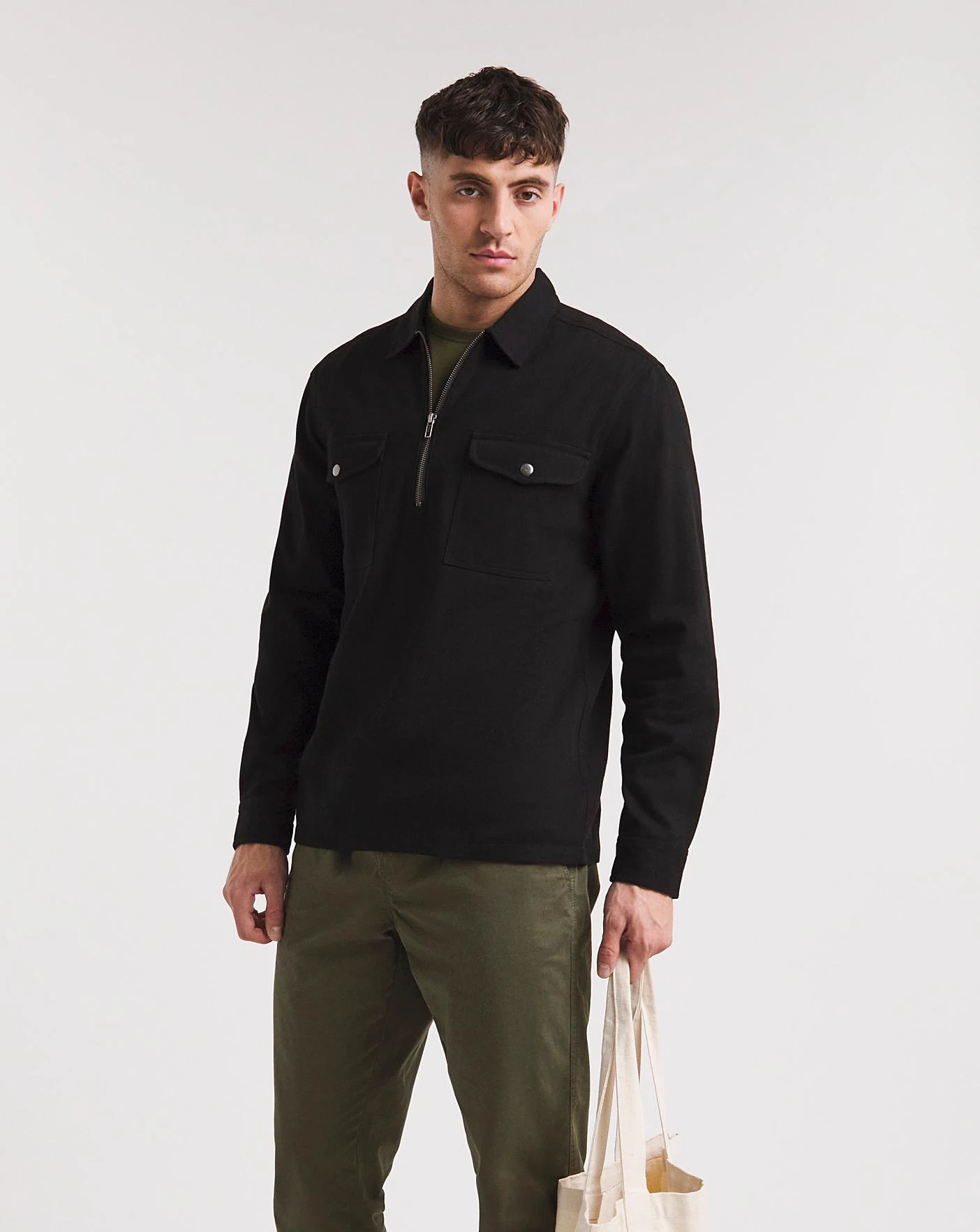 This Jacamo zip neck flannel overshirt in black is a great layering piece to have this season. Pair it with a basic tshirt and some jeans for a casual look.