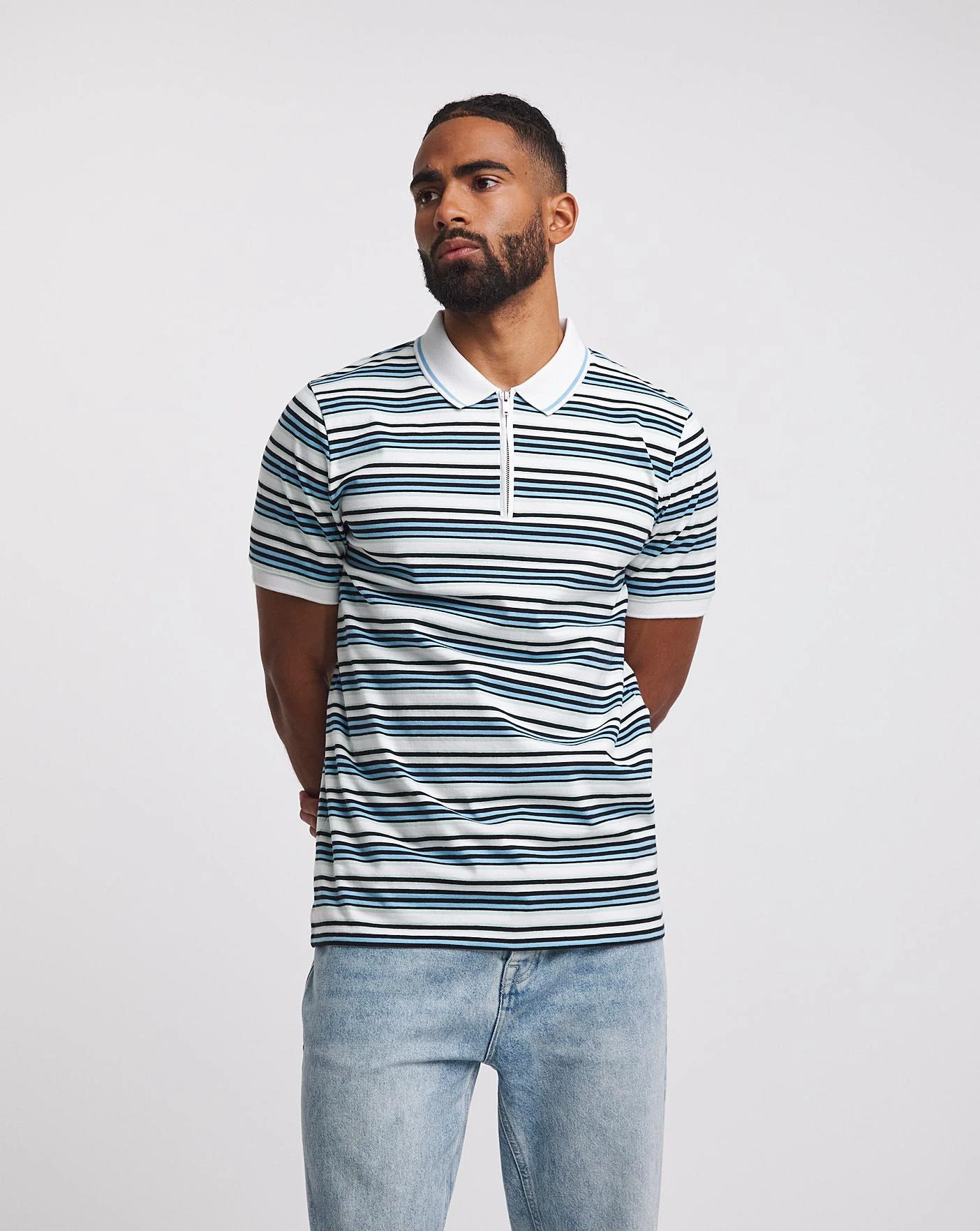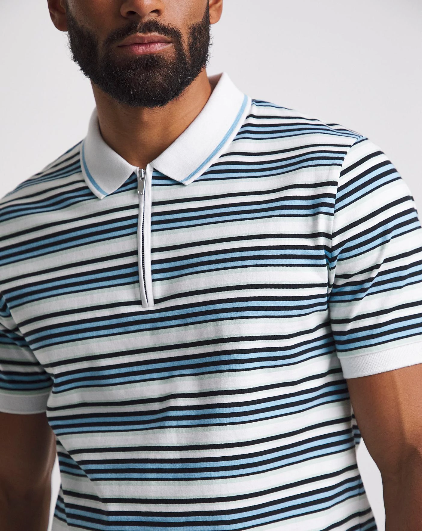 This Zip Neck Jersey Pique Polo Long in blue stripe is fresh and comfortable for the season. Pair with some chinos or jeans from our collection for a smart casual look.